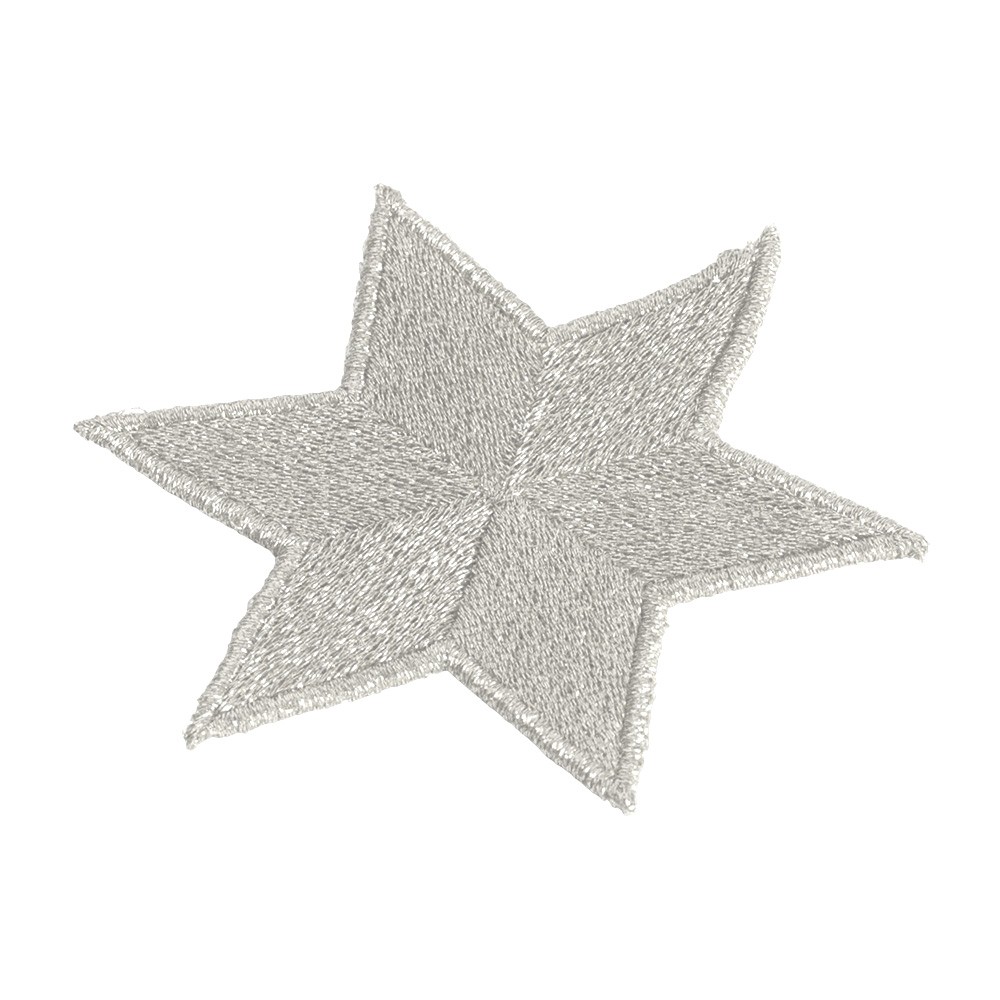 Stella 6 punte ricamata a macchina con filo metallico color argento.