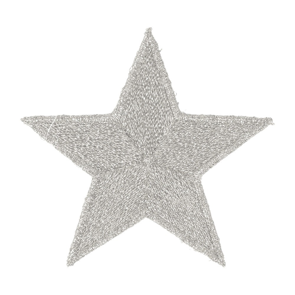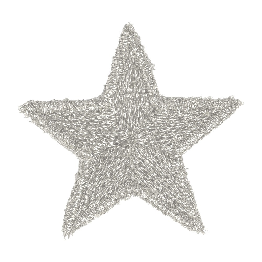 Stella 5 punte ricamata a macchina con filo metallico argento.