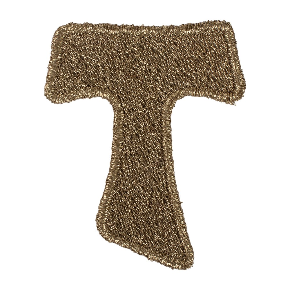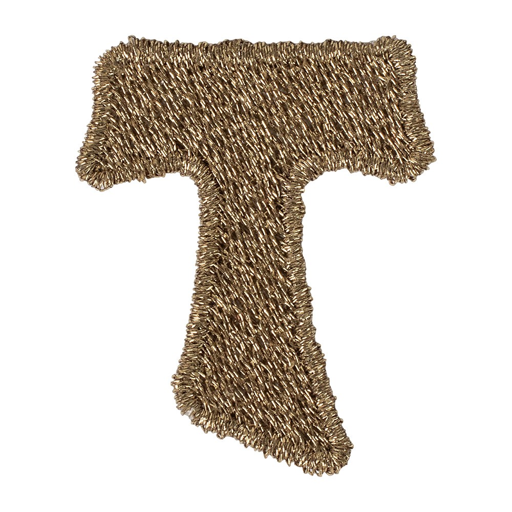 Applicazione TAU ricamata interamente a macchina con filati color bronzo, ideale per decorare e impreziosire paramenti liturgici.