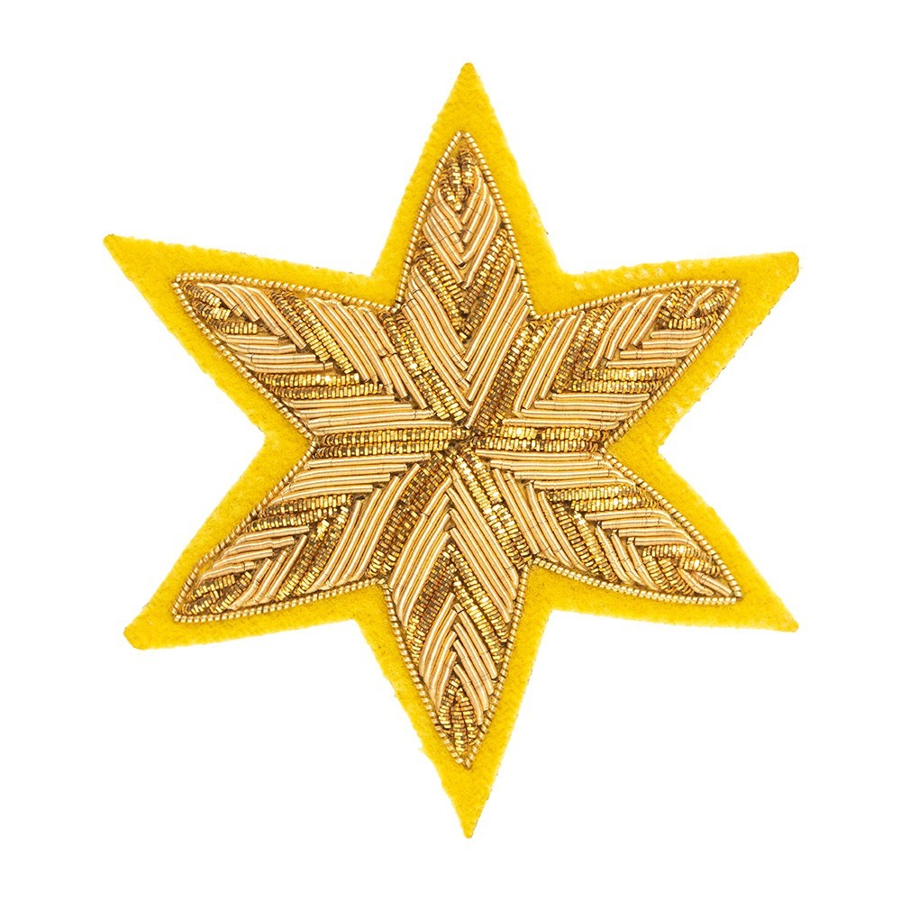 Applicazione in rilievo a forma di stella con 6 punte. Rifinita a mano. H 6 cm. Realizzata da un'azienda italiana. Articolo di qualità.