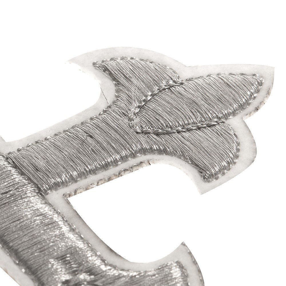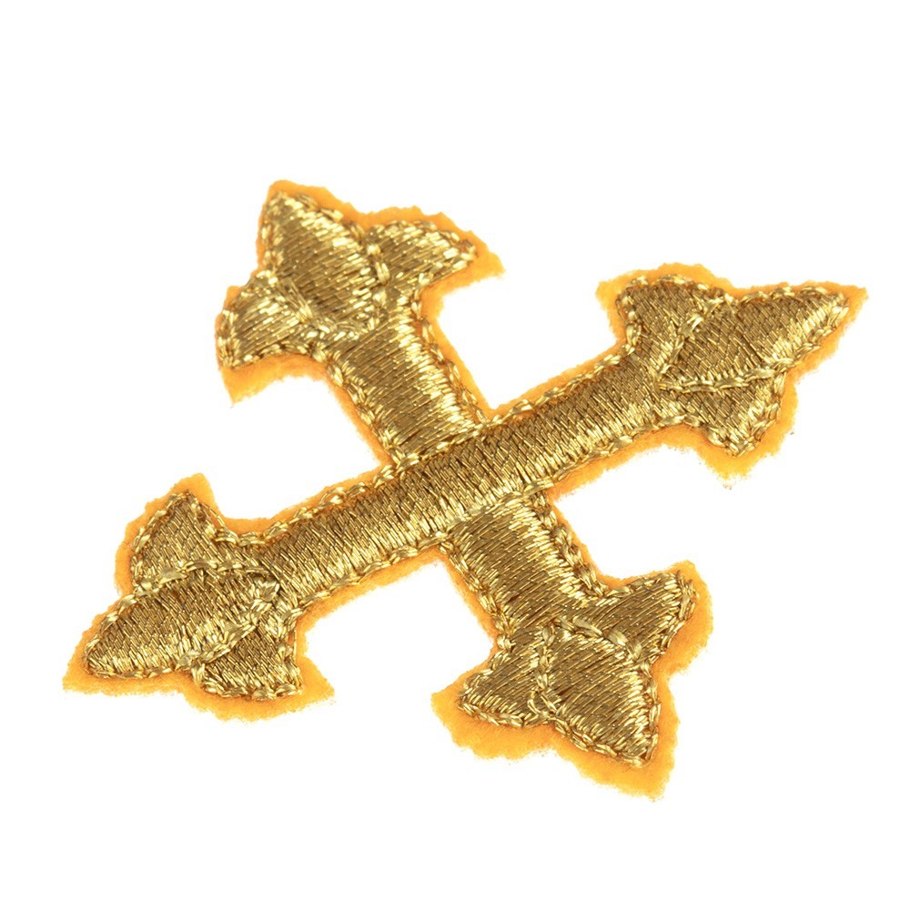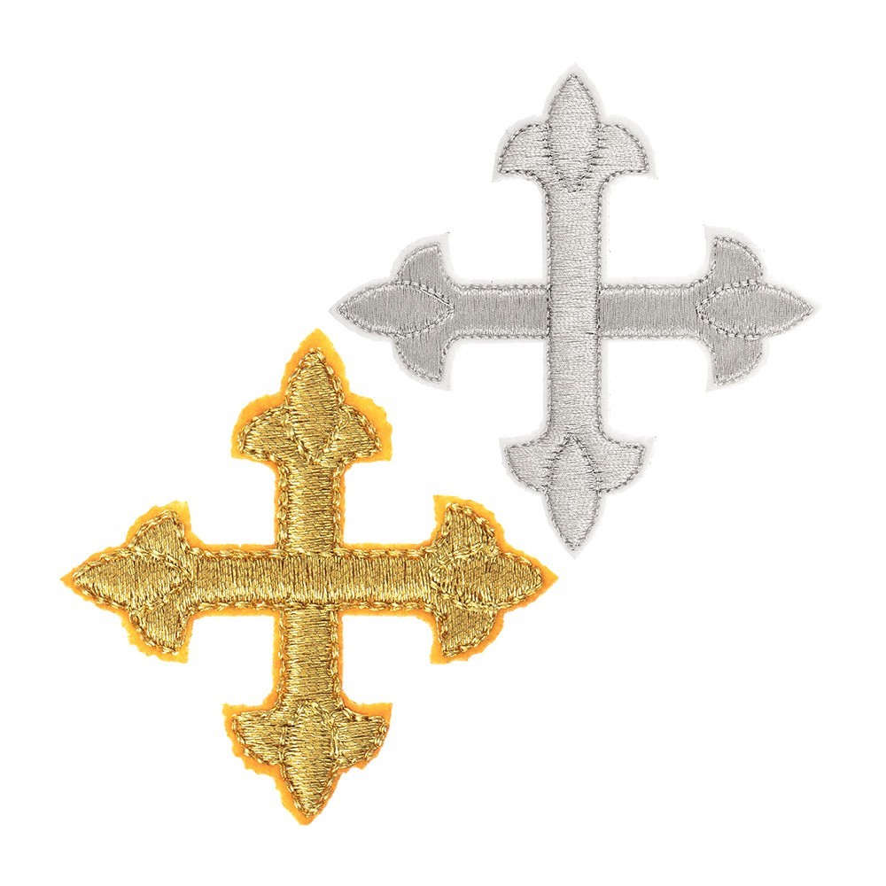 Applicazioni decorate per paramenti liturgici: Croce ricamata su filato in argento e oro. Articolo prodotto interamente da un'azienda italiana.