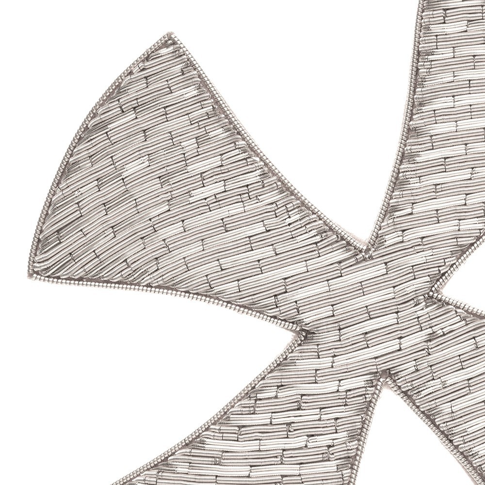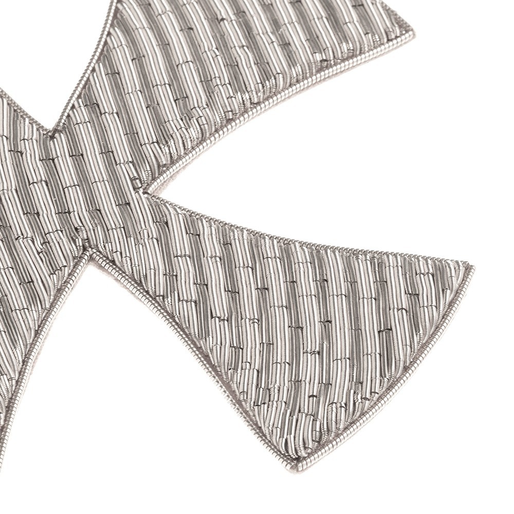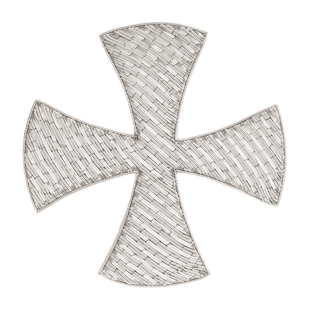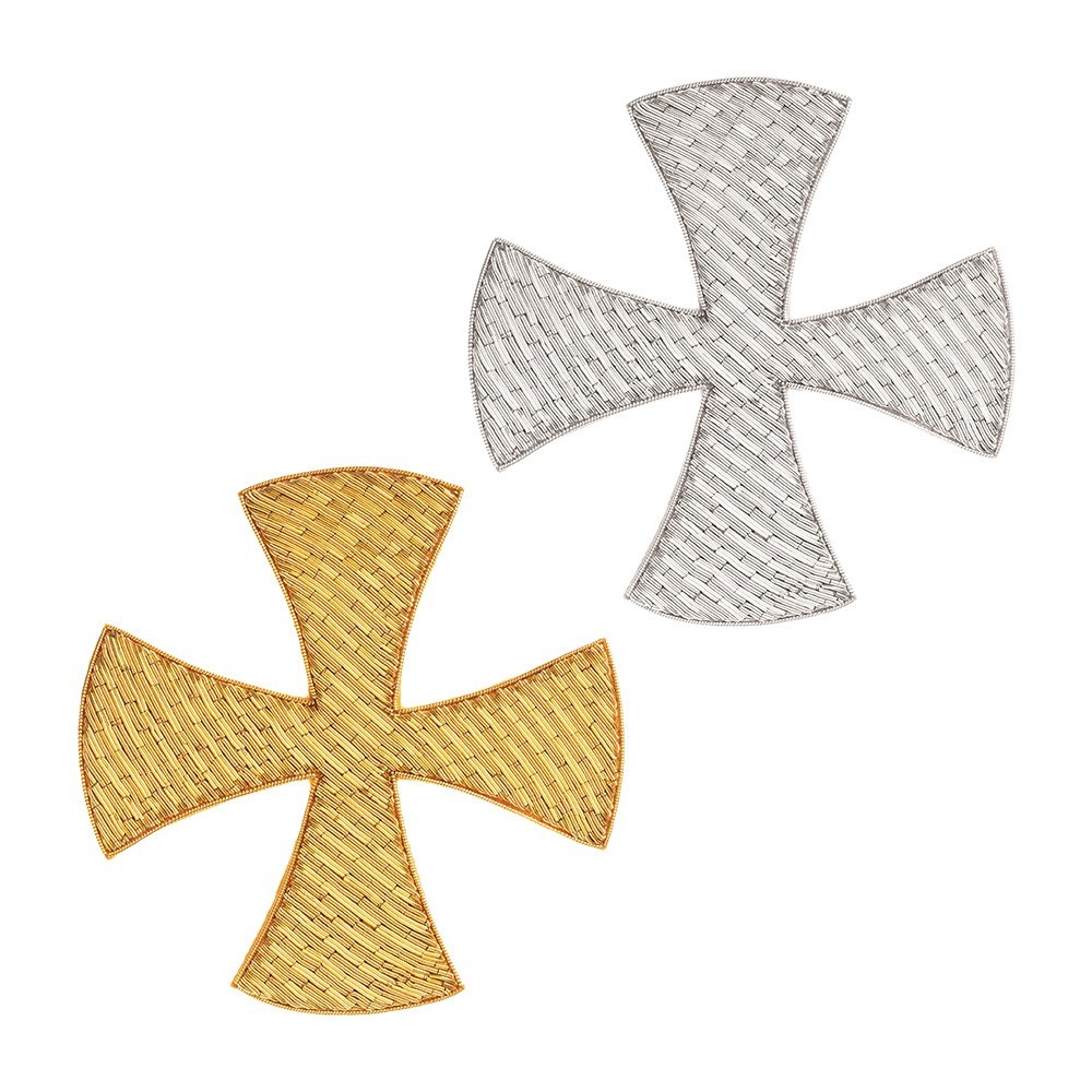 Croce ricamata a mano con filato in canuttiglia oro e argento. Questa croce decorata va cucita e applicata su paramenti sacri: casule, piviali, stole sacerdotali, stole diaconali etc. Articolo di qualità, 100% italiano.