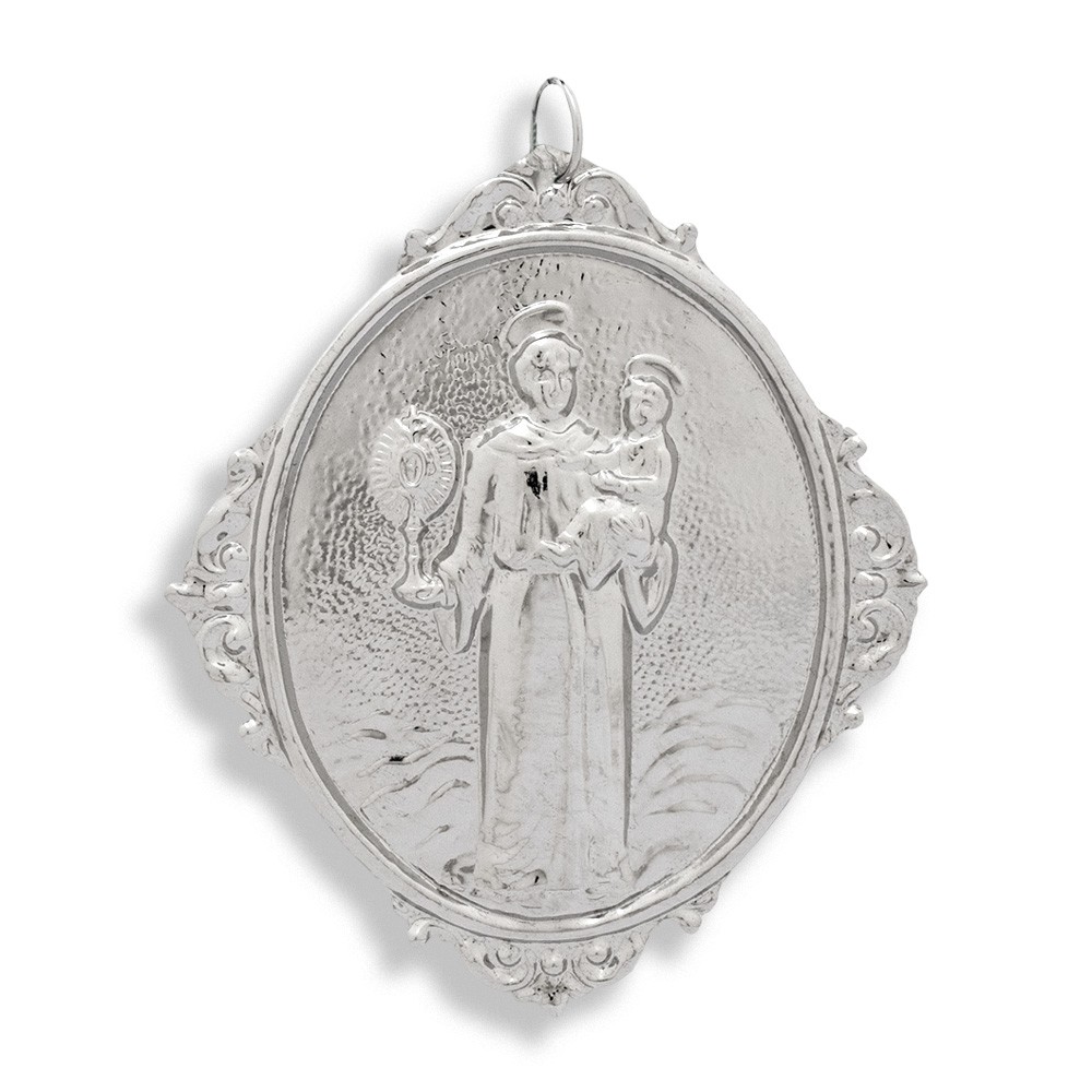 Medaglione per confraternita con immagine raffigurata di Sant'Antonio con bambino e ostensorio.