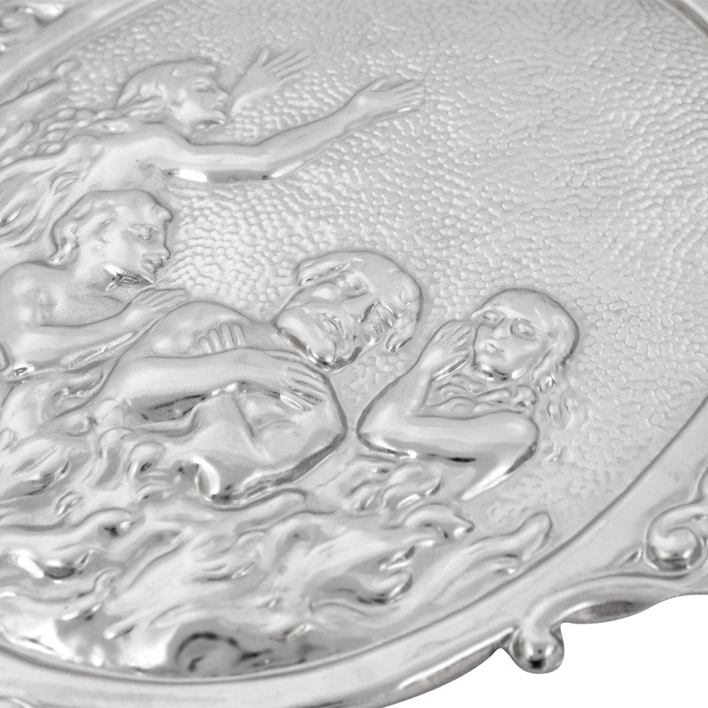 Realizzato in metallo argentato, misura 13,5 x 11,5 cm.