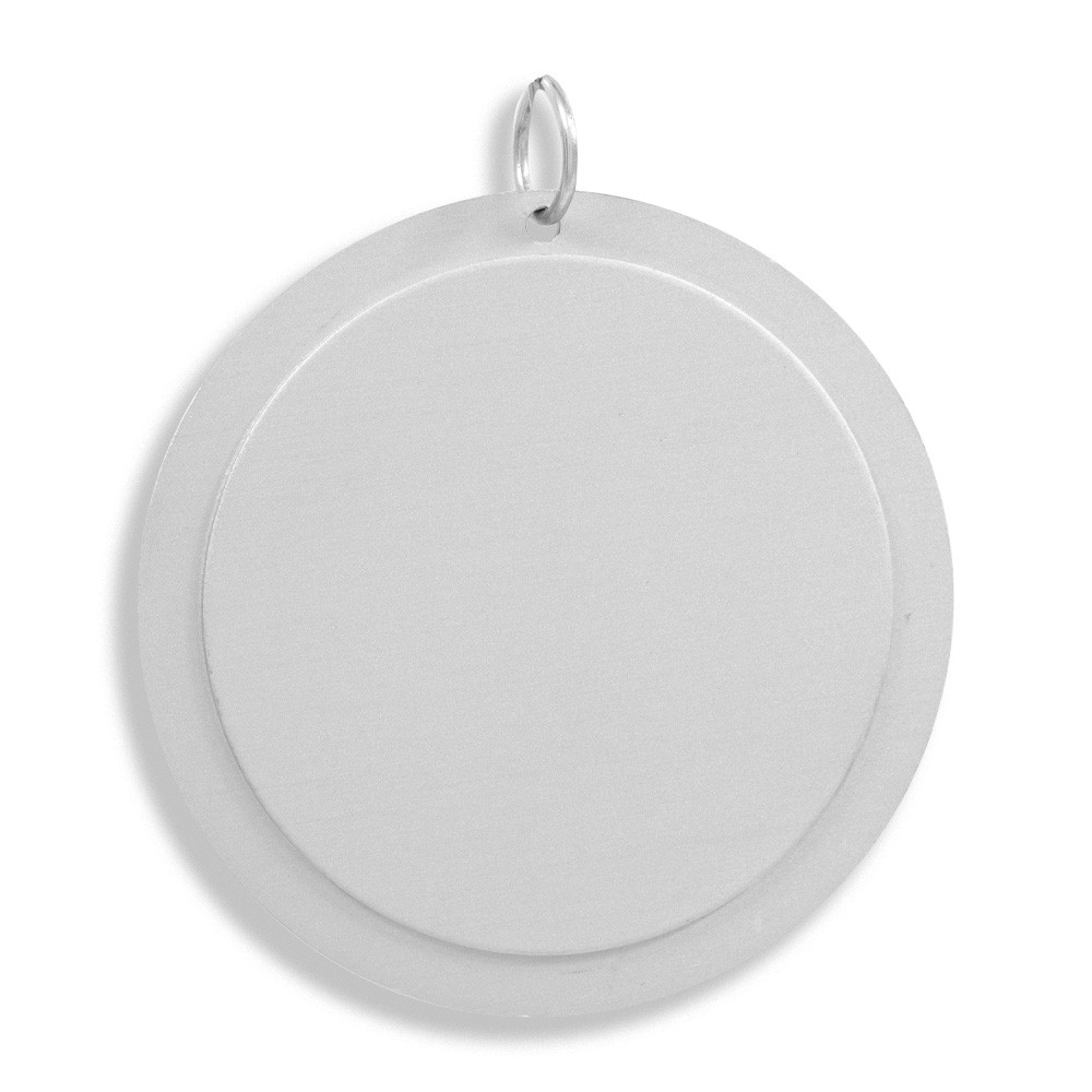 Realizzato in alluminio e ottone argento con immagine della Madonna in rilievo.