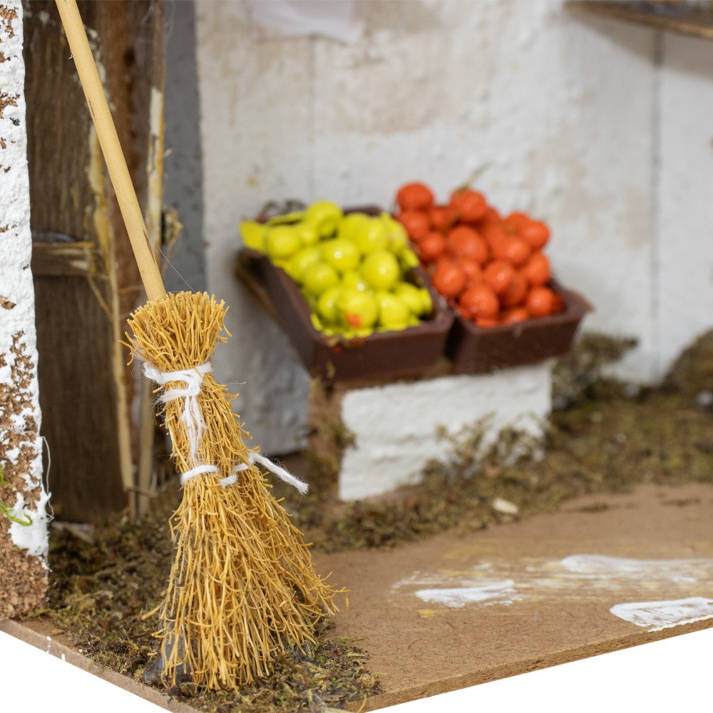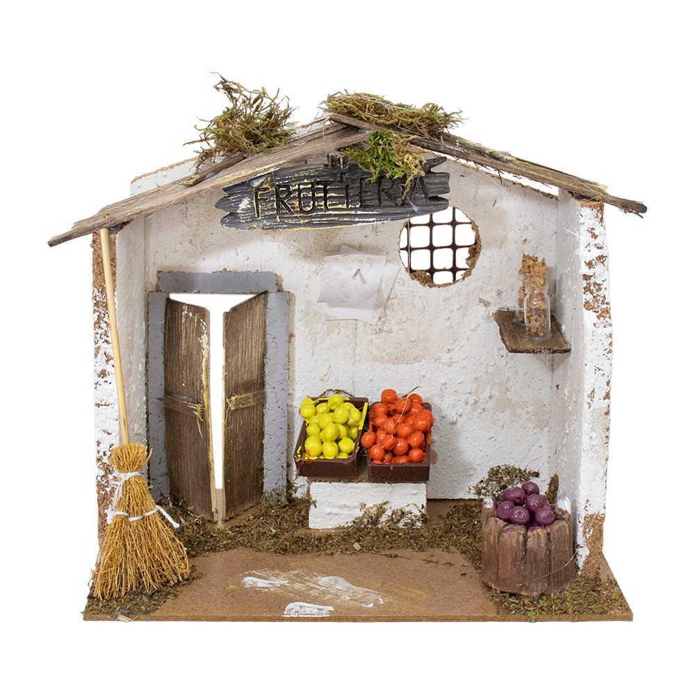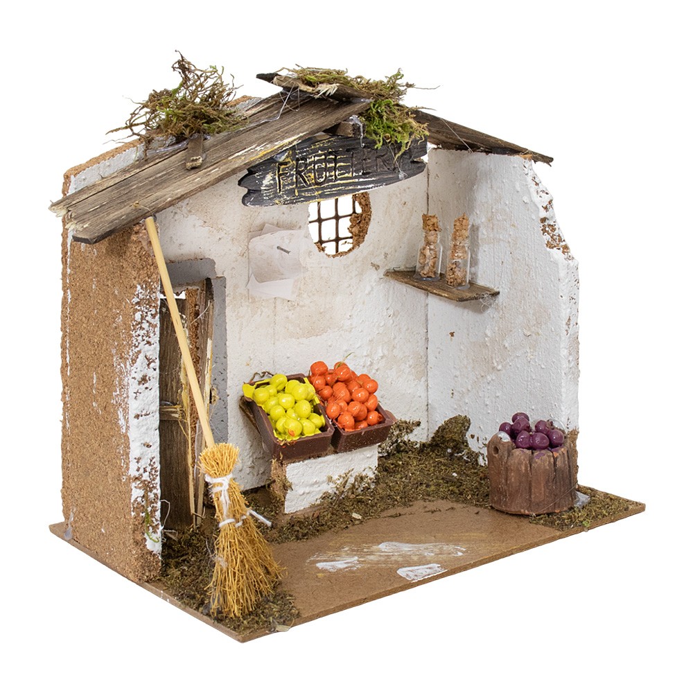 Bottega frutteria classica proporzionata per personaggi del presepe con altezza massima 8 cm.