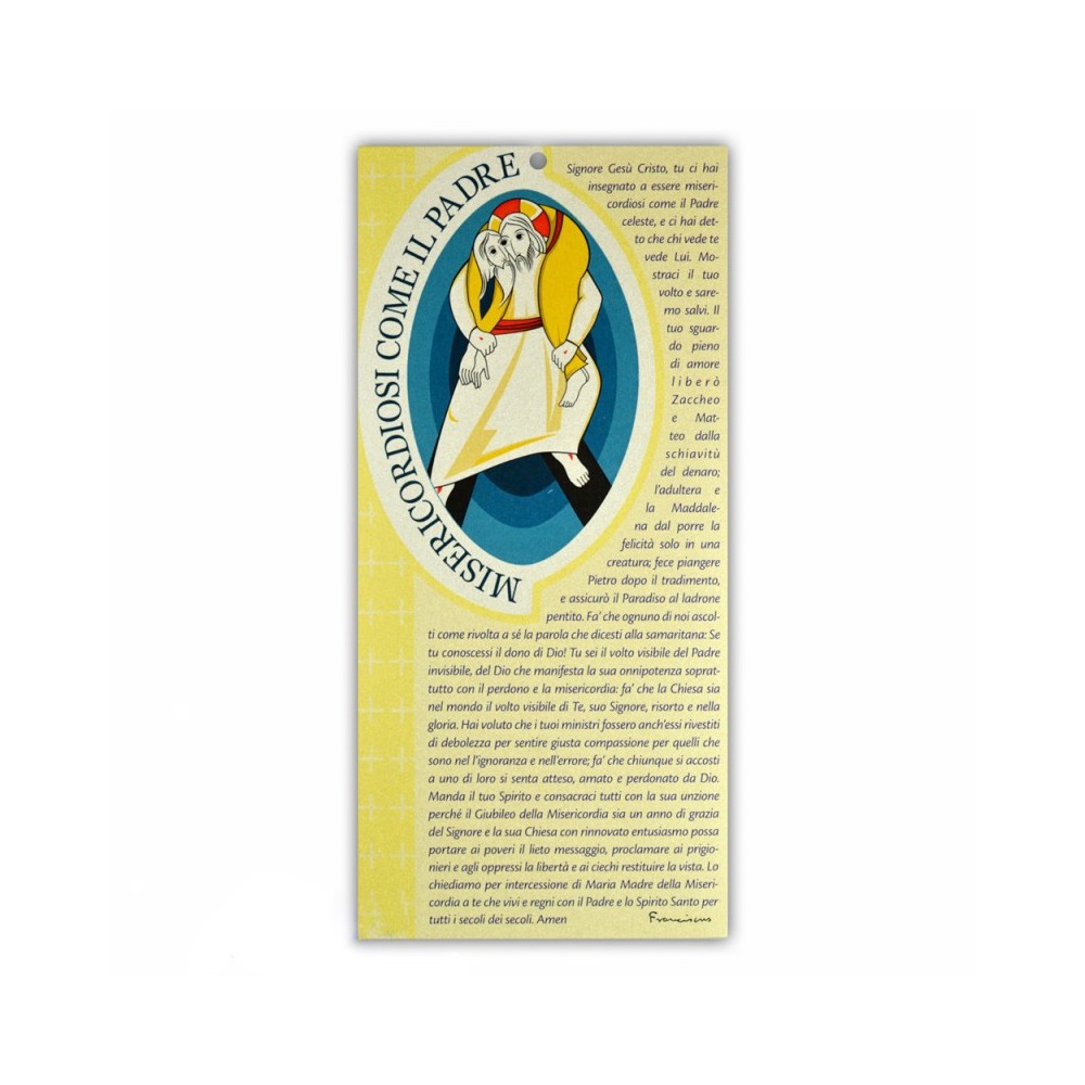 Il Cartoncino per la benedizione della famiglia è a forma rettangolare con preghiera sul retro. Sul cartoncino è riportata l'immagine del Giubileo della Misericordia.
