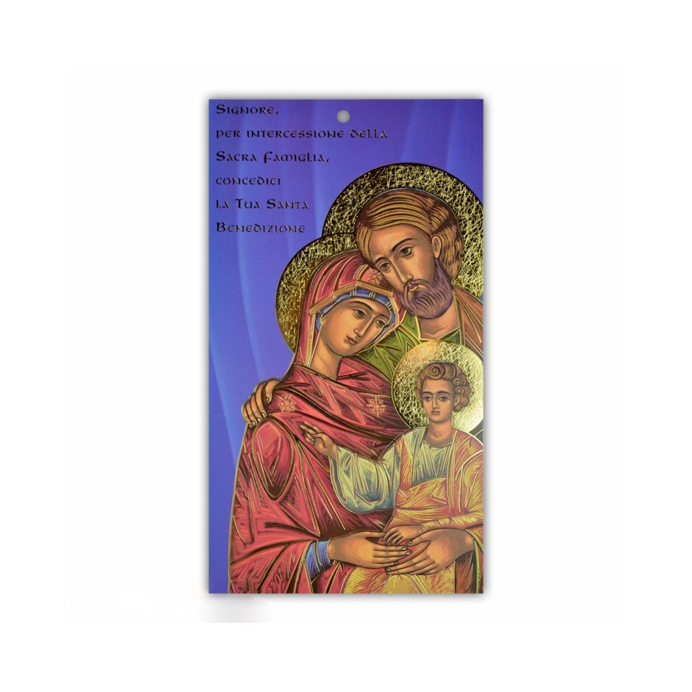 Benedizione della Famiglia con immagine che raffigura una Sacra Famiglia. Con preghiera sul retro e sul davanti è riportata la frase " Signore per intercessione della Sacra Famiglia, concedici la tua Santa Benedizione".
