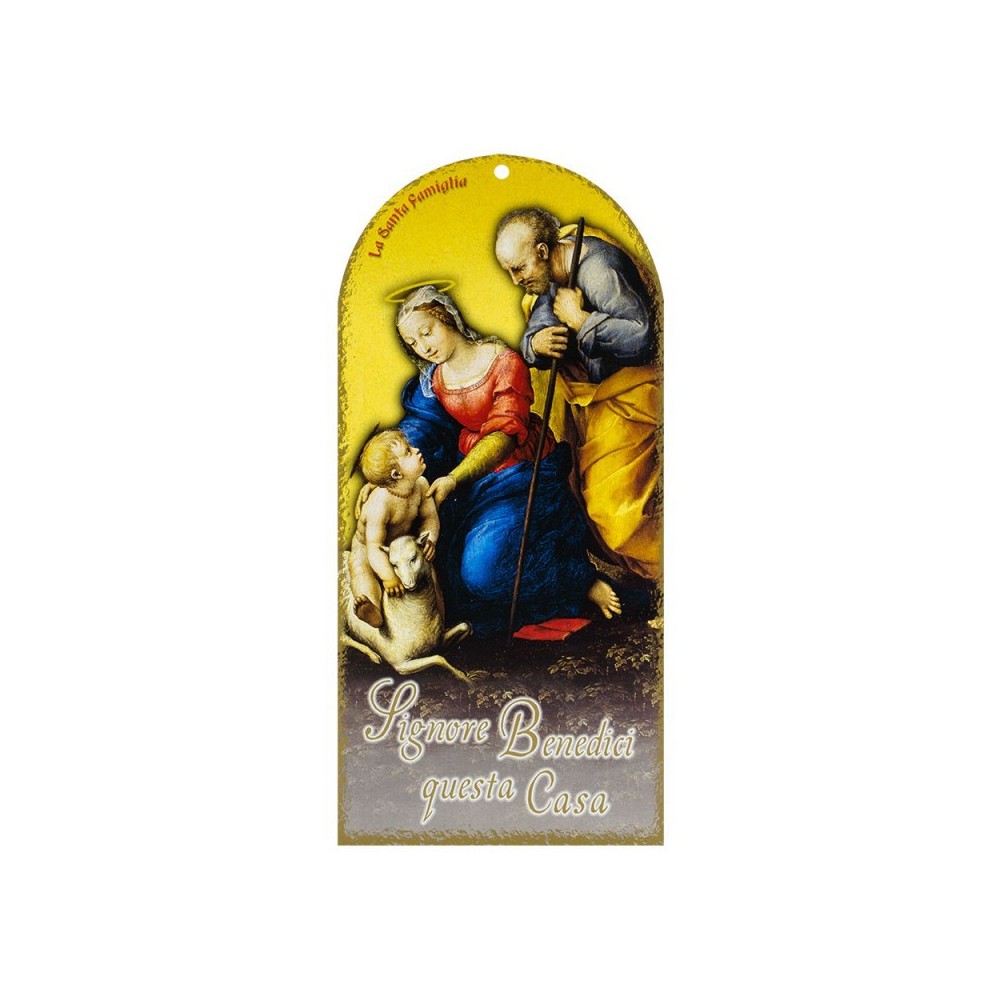 Cartoncino forma tonda con immagine oro a caldo di una Sacra Famiglia, da utilizzare per la preghiera della benedizione della famiglia. Sul davanti è riportata la frase " Signore Benedici questa Famiglia". Sul retro è riportata la preghiera per la Benedione della Famiglia.