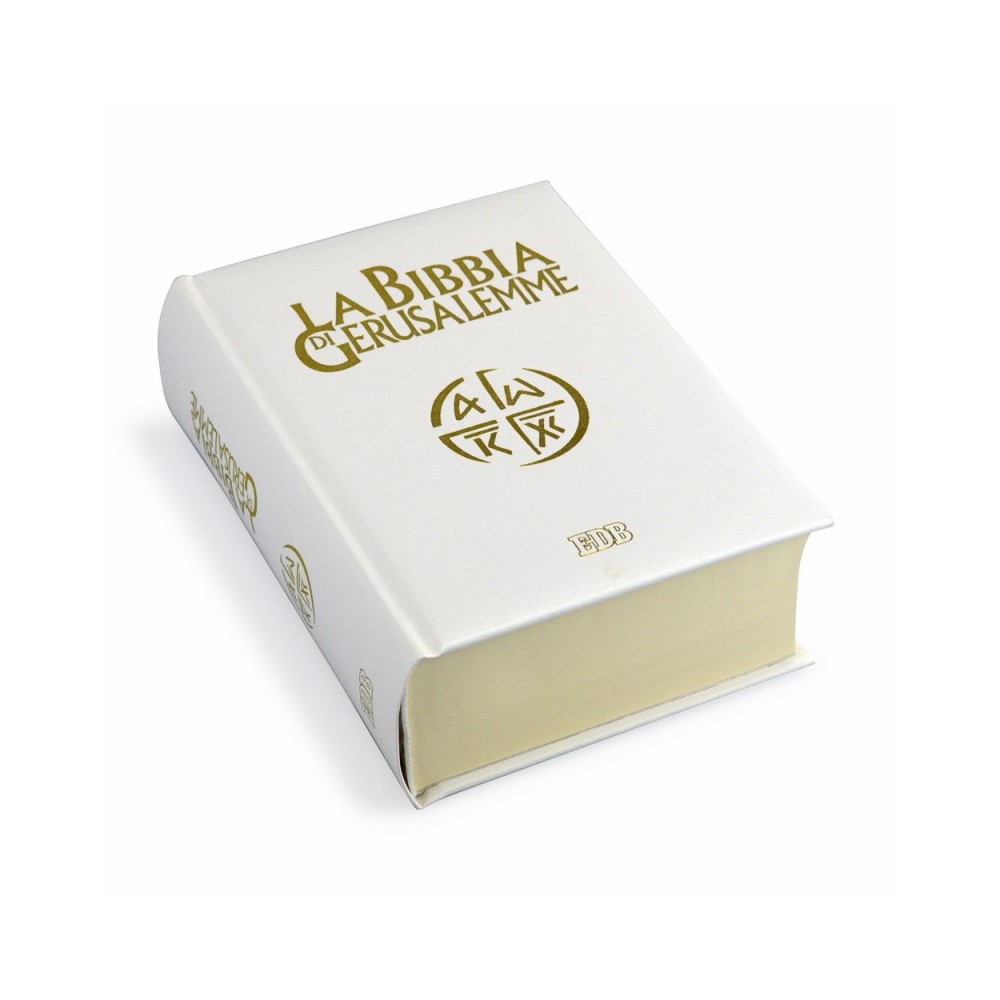 Bibbia di Gerusalemme è la più diffusa e la più amata dai credenti. La copertina è in similpelle bianca con scritte dorate. Ottima idea regalo per occasioni particolari, come matrimonio, anniversari, comunioni o cresime.