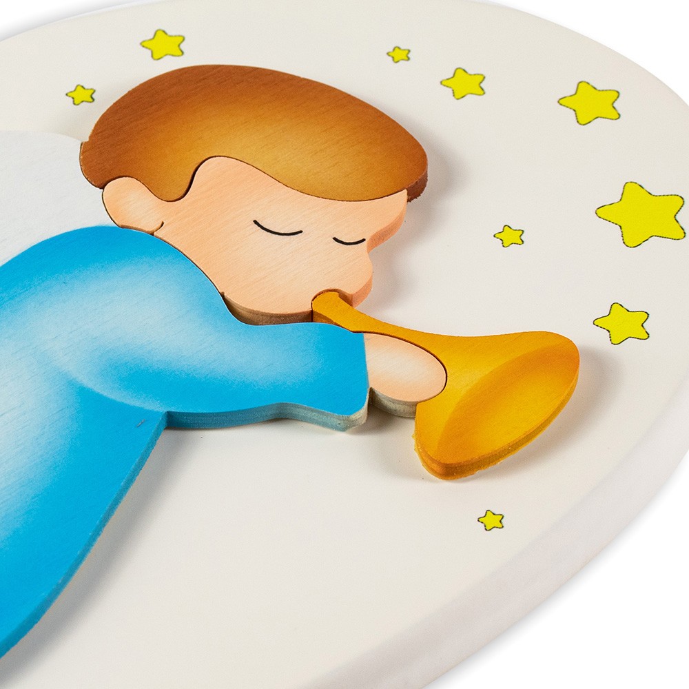 Carinissimo quadretto ovale decorato con sagoma in rilievo raffiguante un angelo che suona la tromba.