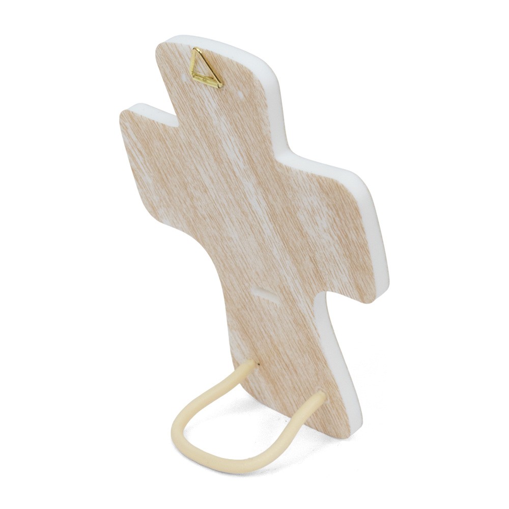 Croce con al centro l'immagine della Sacra Famiglia, realizzata in polimero dai toni caldi e armoniosi, simbolo di amore.