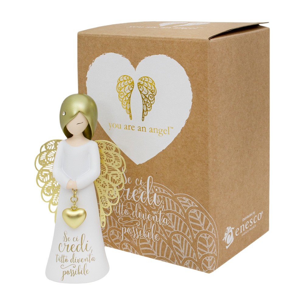 Un piccolo angelo dal design moderno decorato a mano, con frase dipinta " Se ci credi tutto diventerà possibile" - Linea Collezione You Are An Angel.