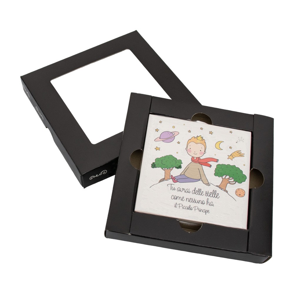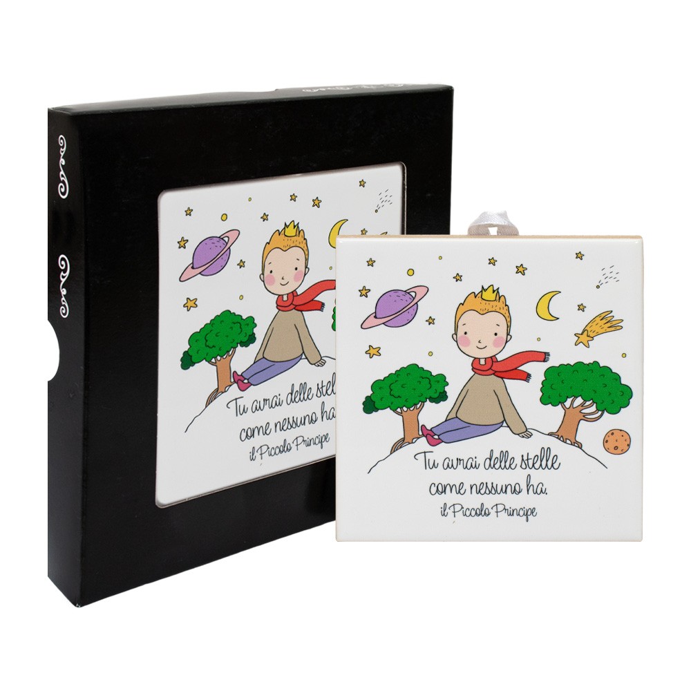 Quadretto Piastrella Piccolo Principe NOVITA' 2023 con decori e frase stampata.