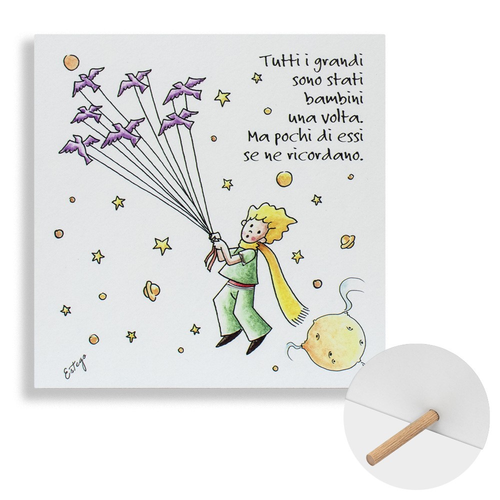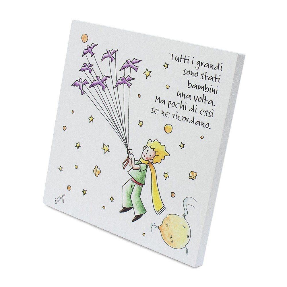 Meraviglioso quadretto realizzato in legno bianco, decorato a mano con frase stampata " Tutti i grandi sono stati bambini una volta. Ma pochi di essi se ne ricordano" tratta dal famoso libro del Piccolo Principe