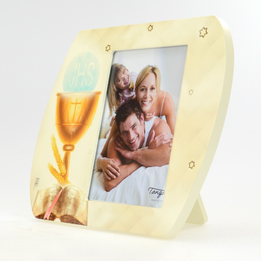 Bellissima bomboniera portafoto per la Prima Comunione della Linea Tangari. Realizzato in legno dipinto color avorio crema. Prodotto da un'azienda italiana, garantendo l'unicità di ogni articolo e cura nei minimi dettagli.