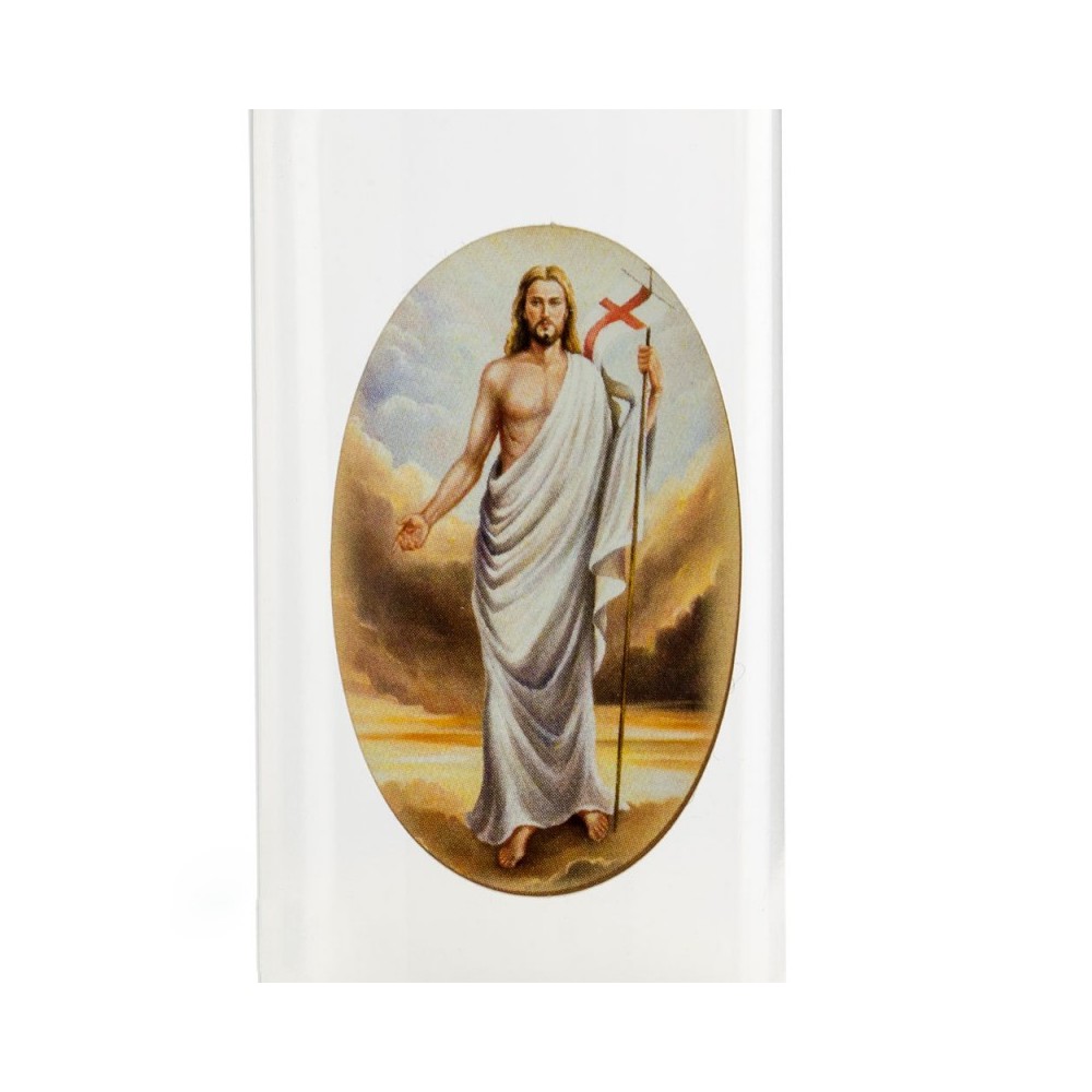 Bottigliette per Acqua Benedetta con immagine di Gesù Risorto.
