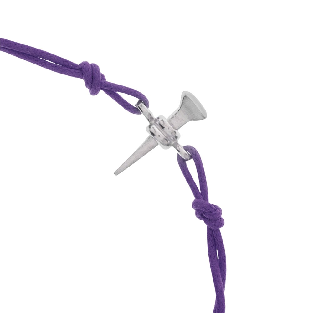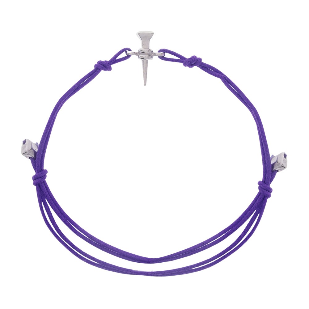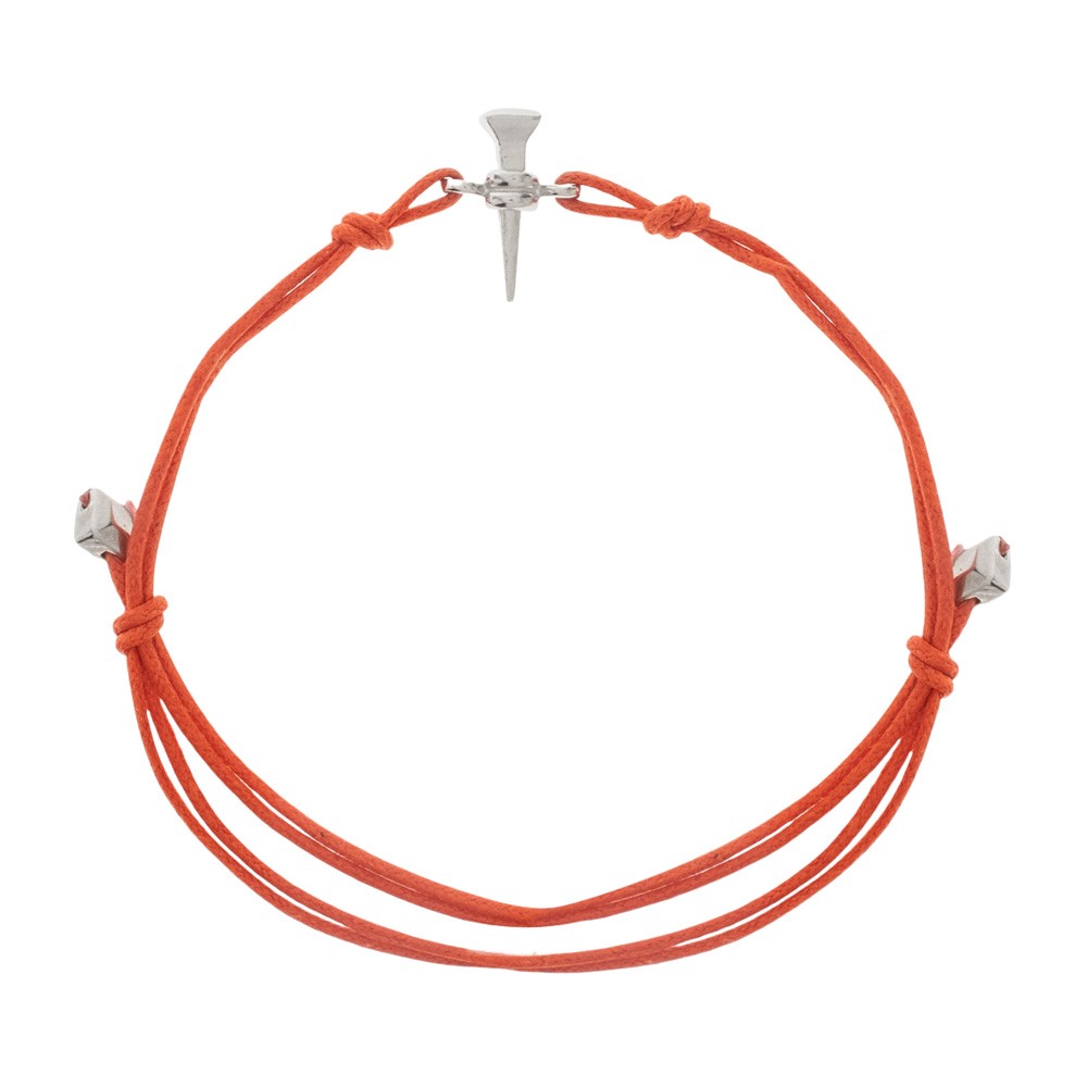 Questo bracciale è realizzato in corda colorato con ciondolo chiodo in argento.