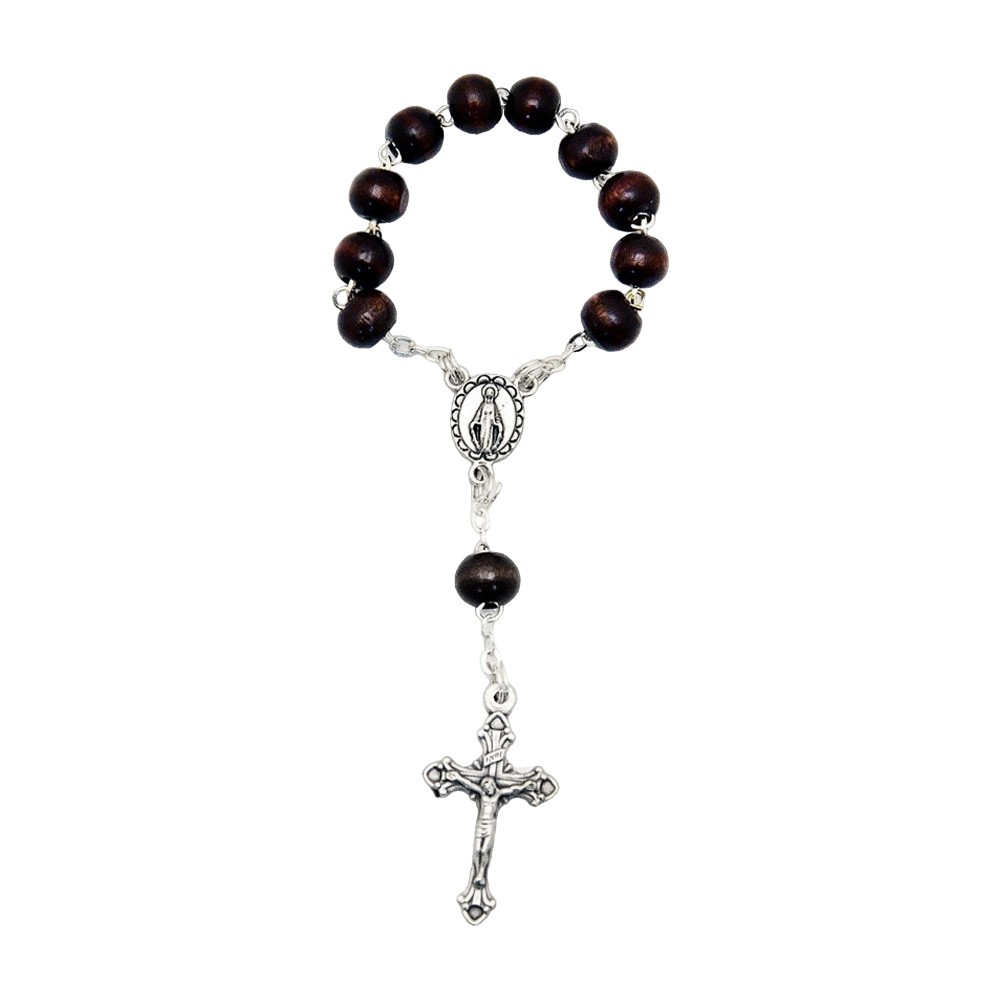 Decina in legno da dito, una coroncina del rosario per pregare con discrezione. Imbustata.