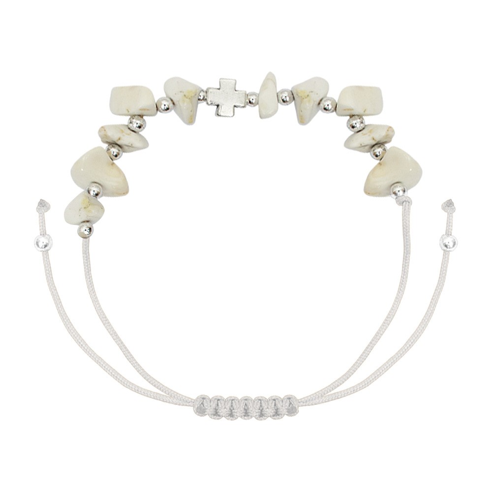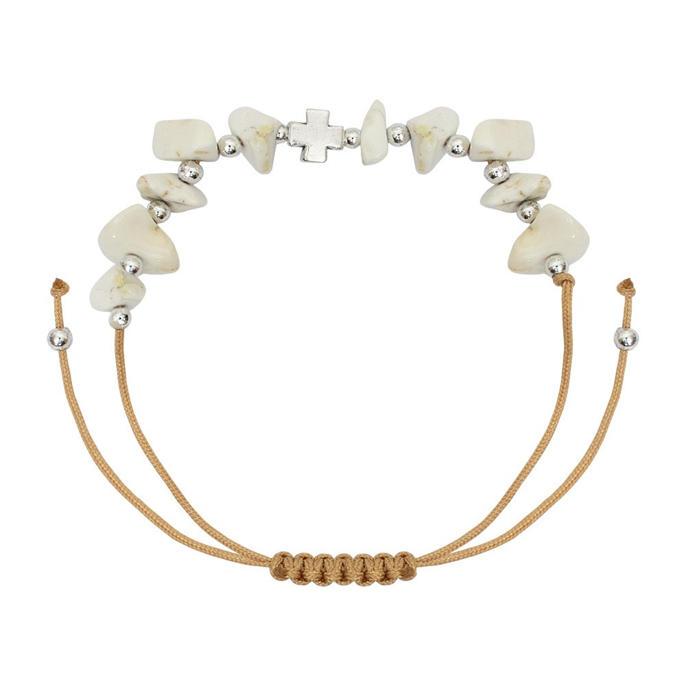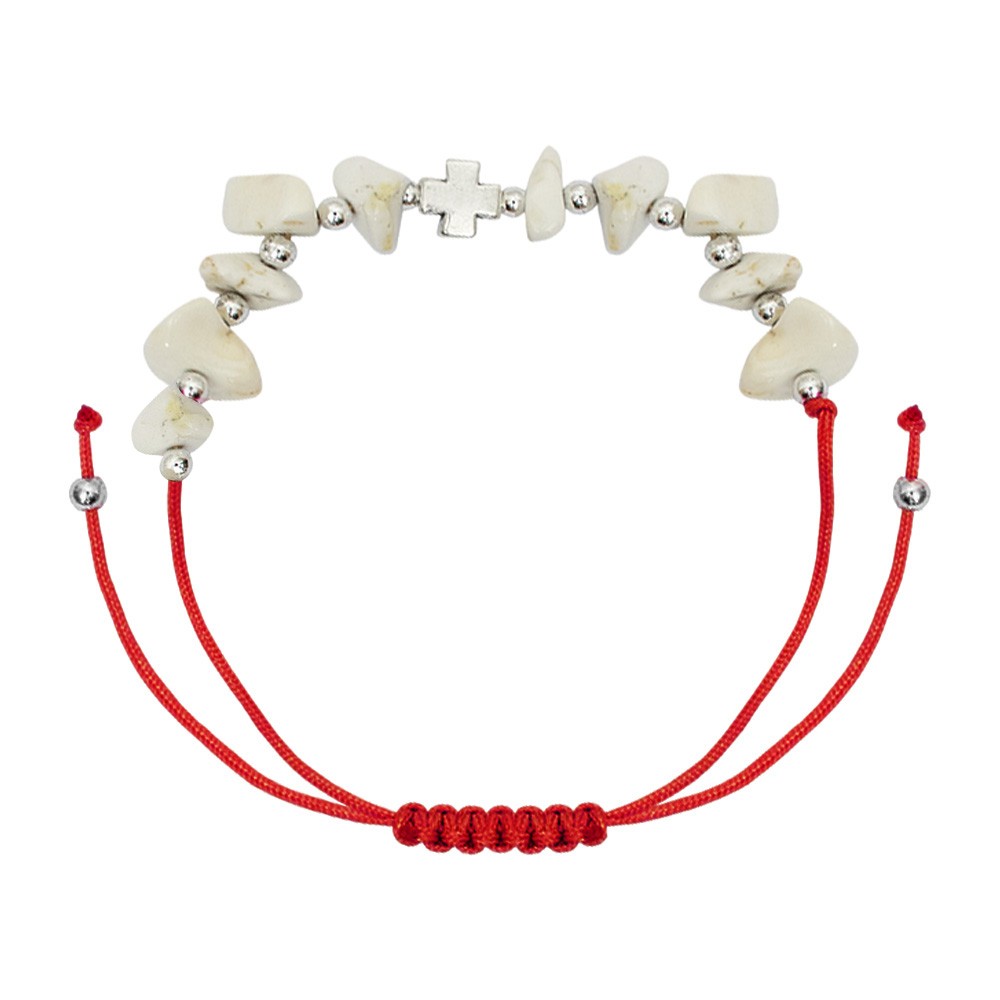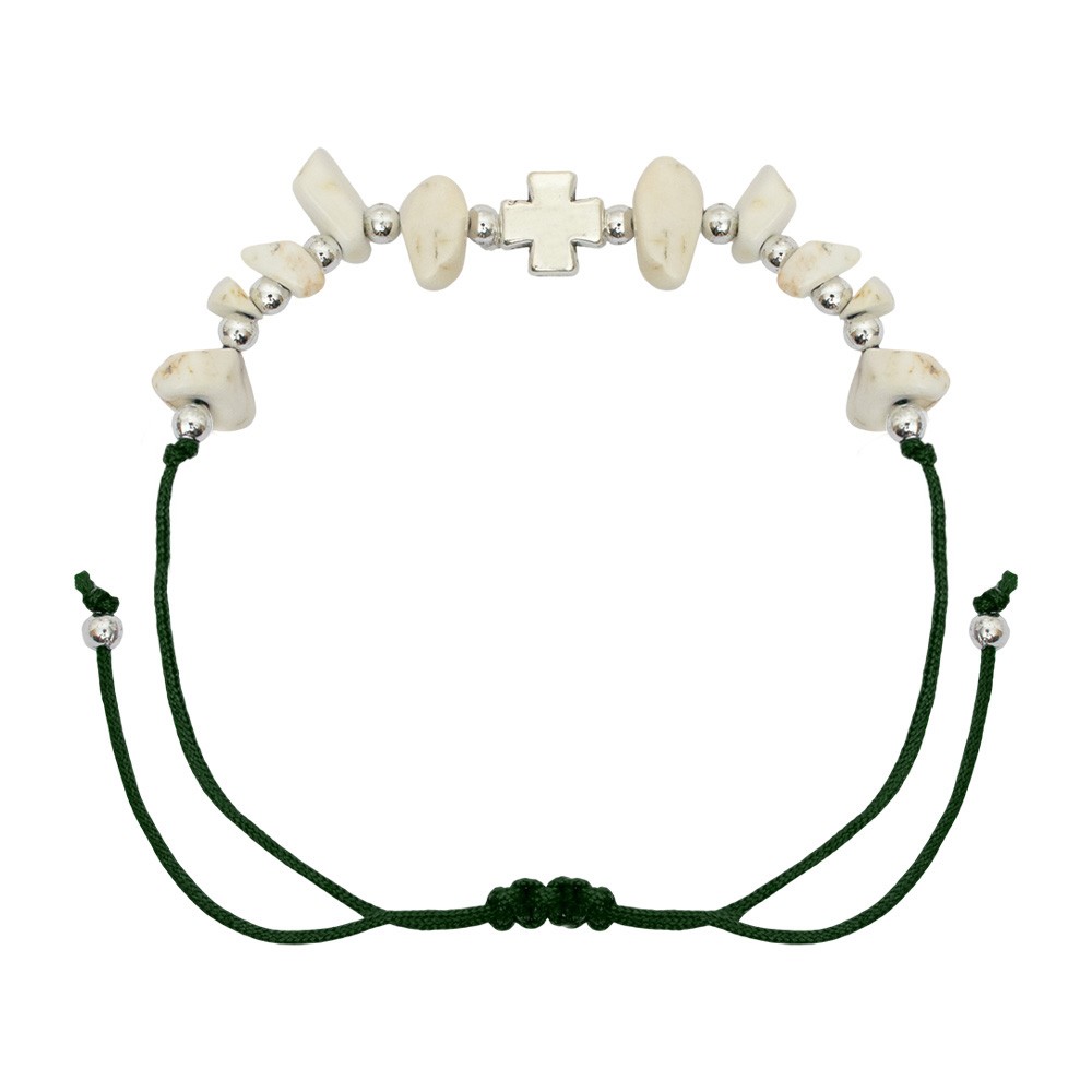 Bracciale Rosario in corda colorata (colori assortiti) con grani in pietra alternati da mini grani tondi in metallo. Il bracciale è regolabile si adatta a qualsiasi polso, allargandosi o stringendosi a seconda delle esigenze.