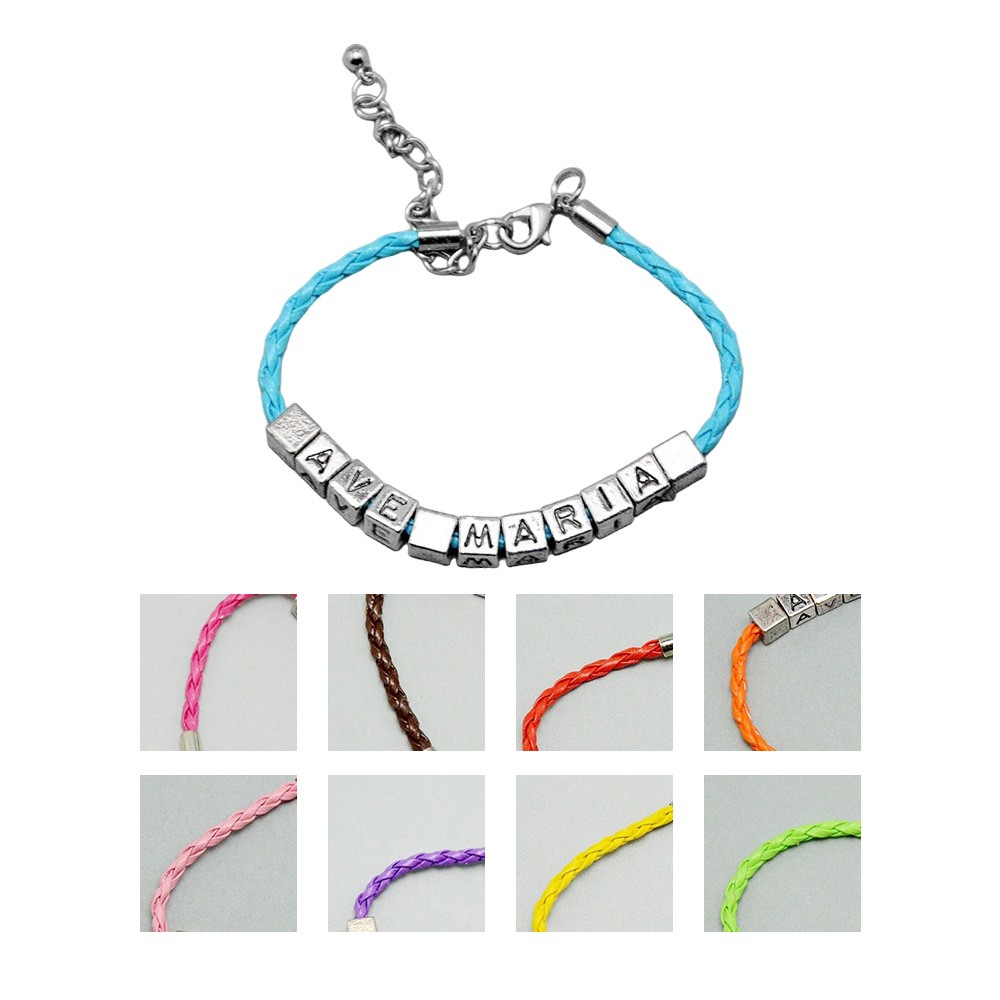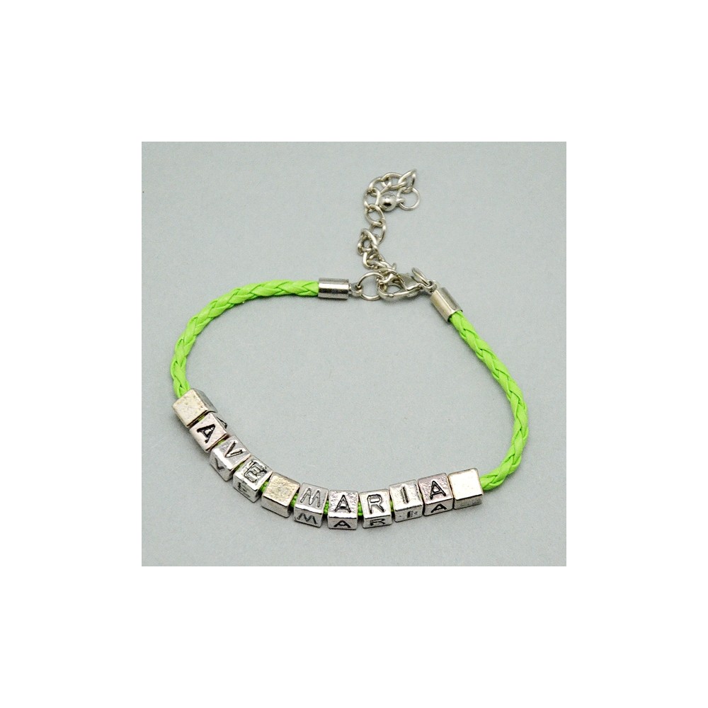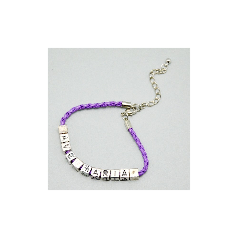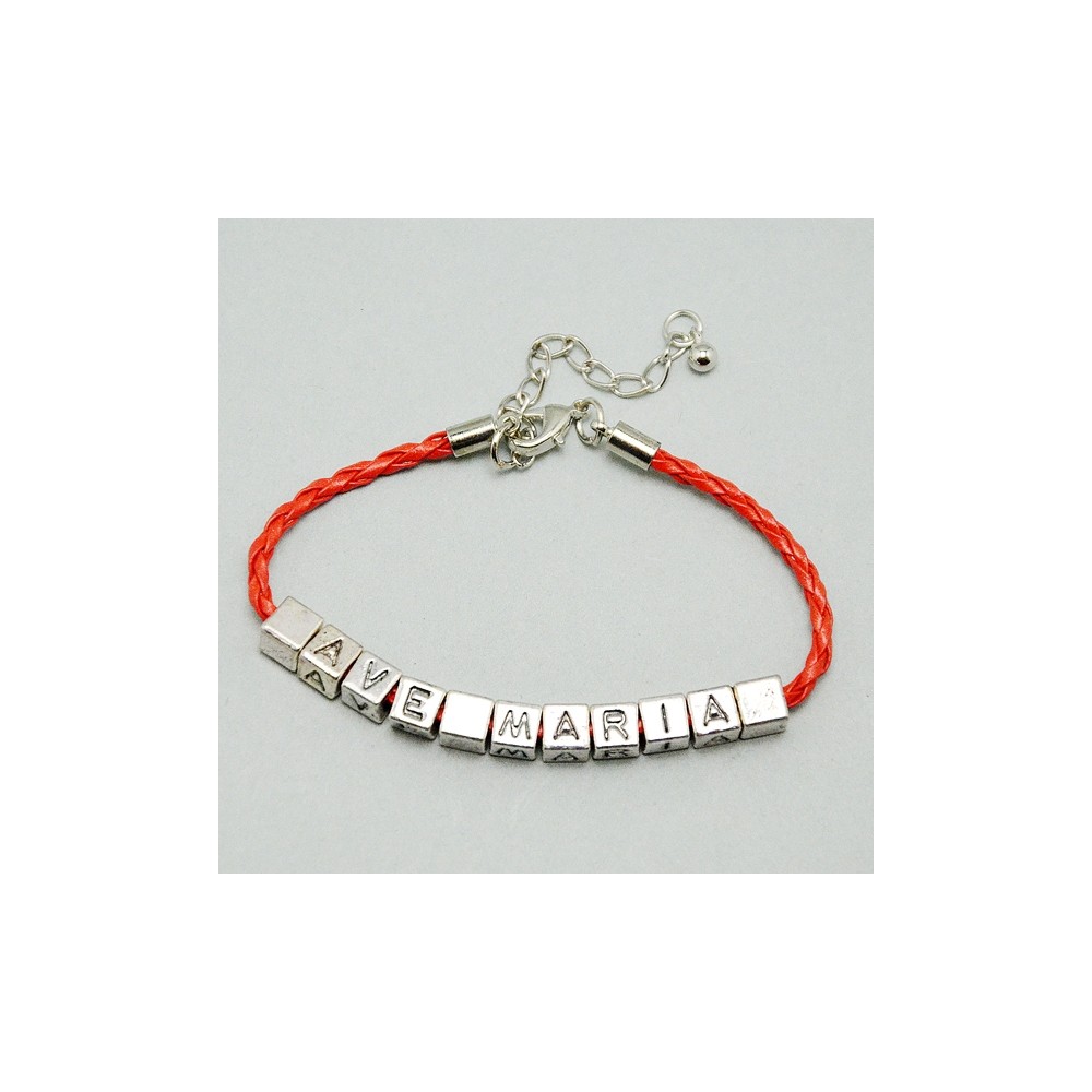 Bracciale in plastica colorato e metallo argentato riportata la scritta "Ave Maria ". Carinissima idea Regalo, imbustata.