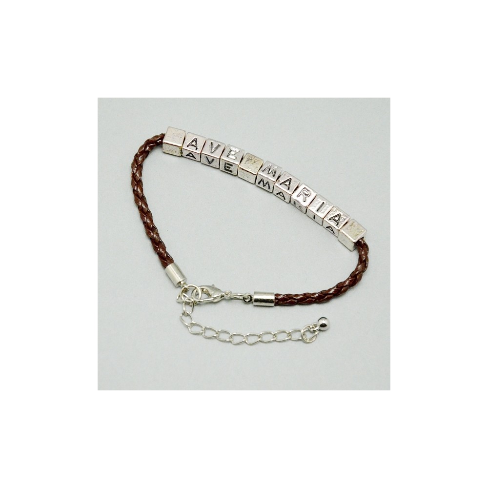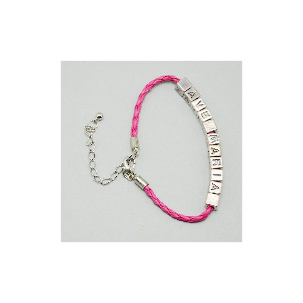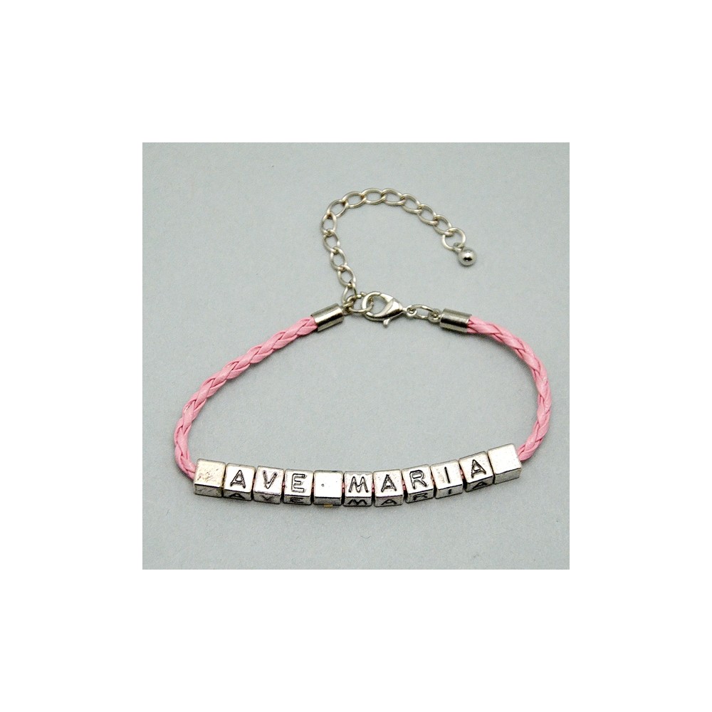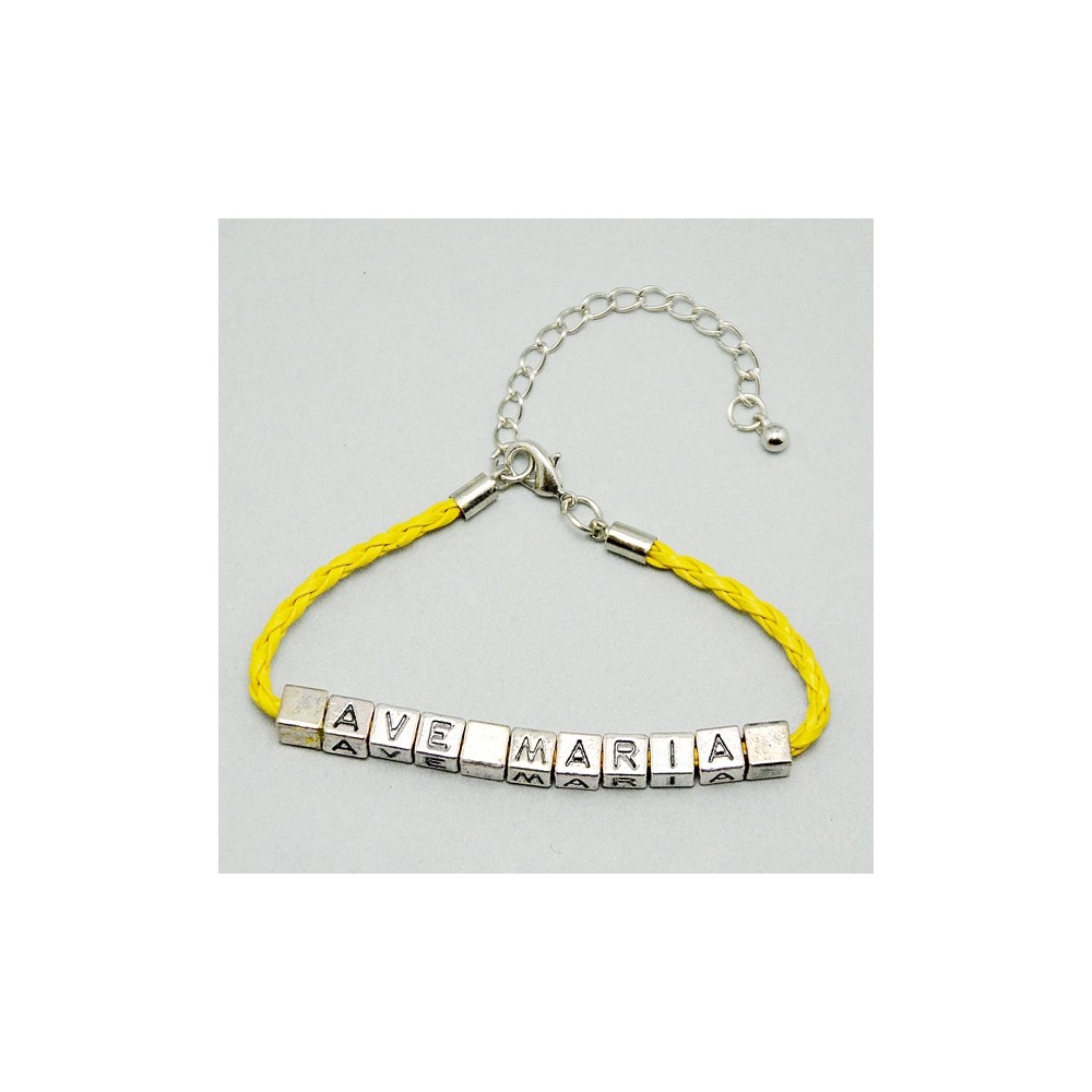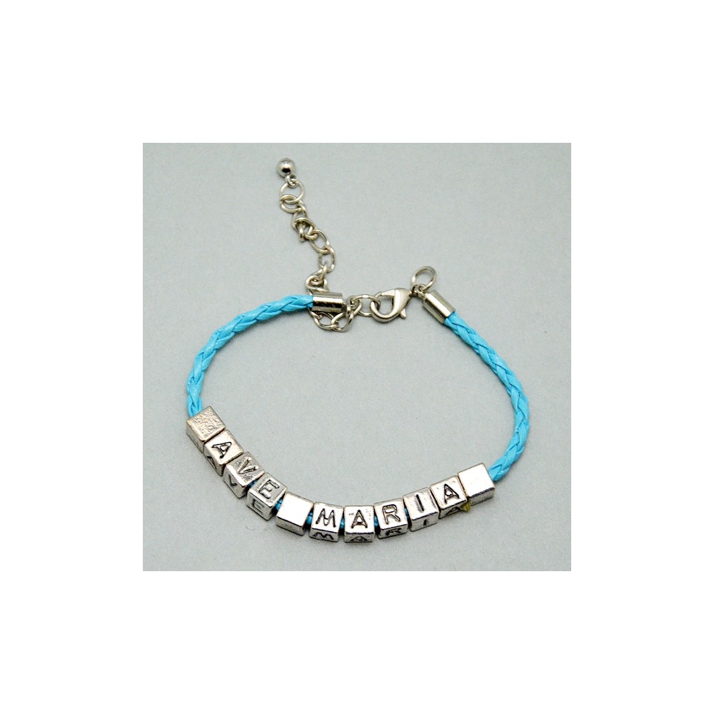 Bracciale in plastica colorato e metallo argentato riportata la scritta "Ave Maria ". Carinissima idea Regalo, imbustata.