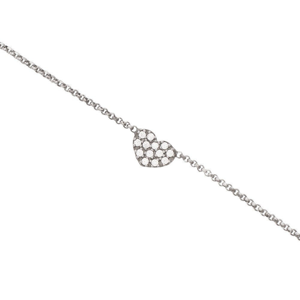 Bracciale in argento con pendente cuore e zirconi, collezione Amen.