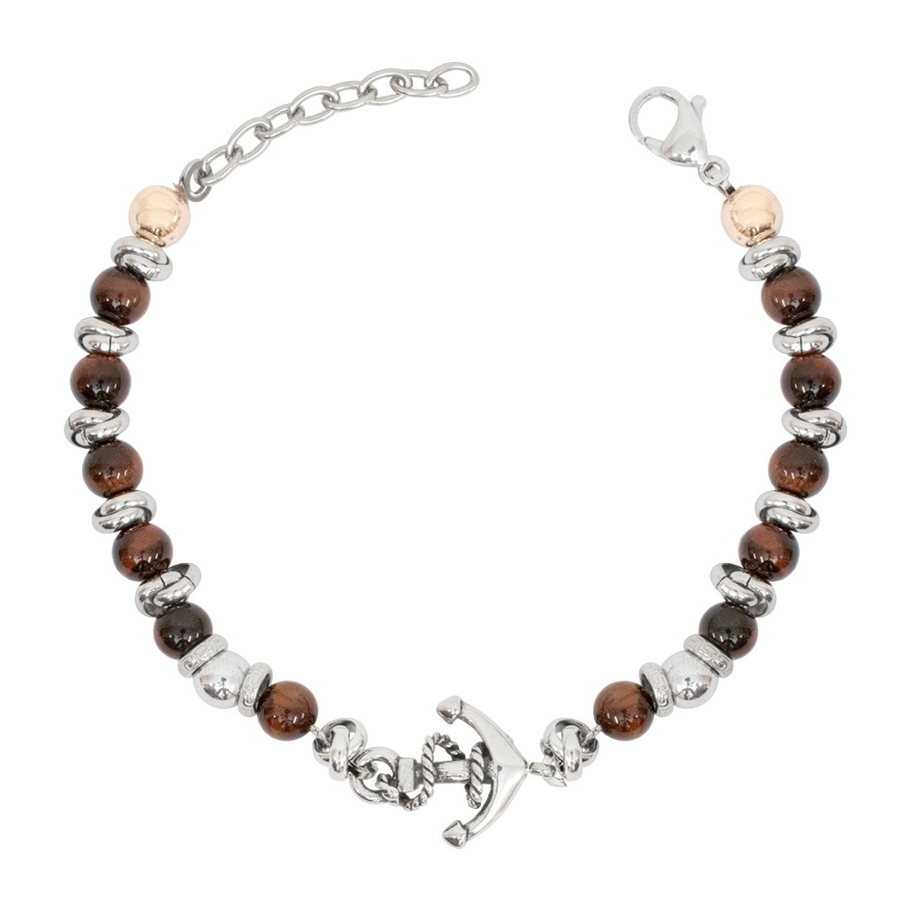 Bracciale in acciaio impreziosito da pietre naturali marroni e simbolo dell’Ancora. Completo di elegante confezione regalo con shopper abbinata.