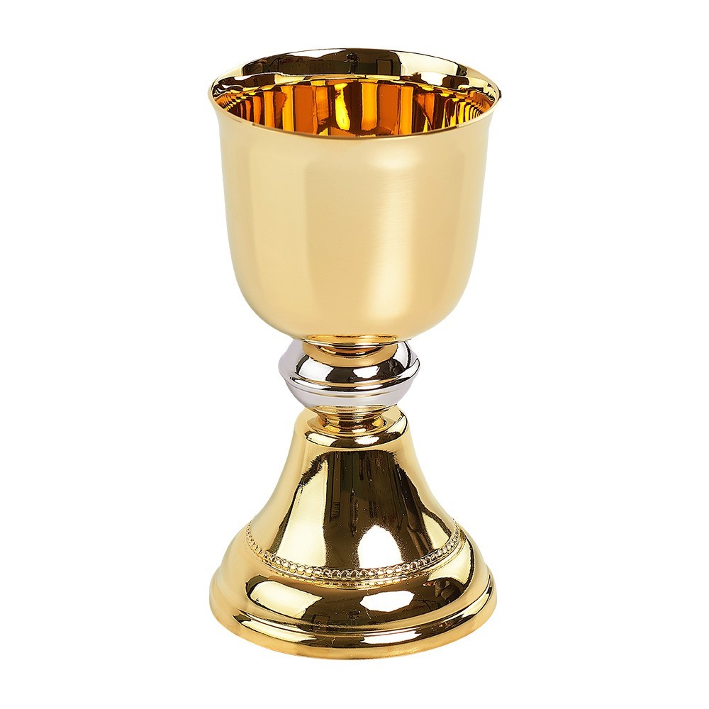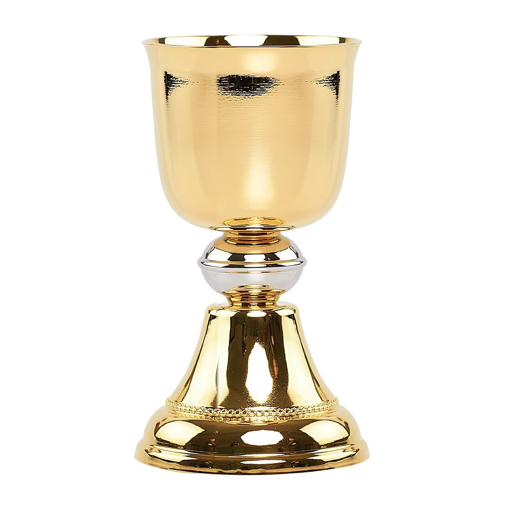Calice liturgico in ottone bicolore, h 24 cm.