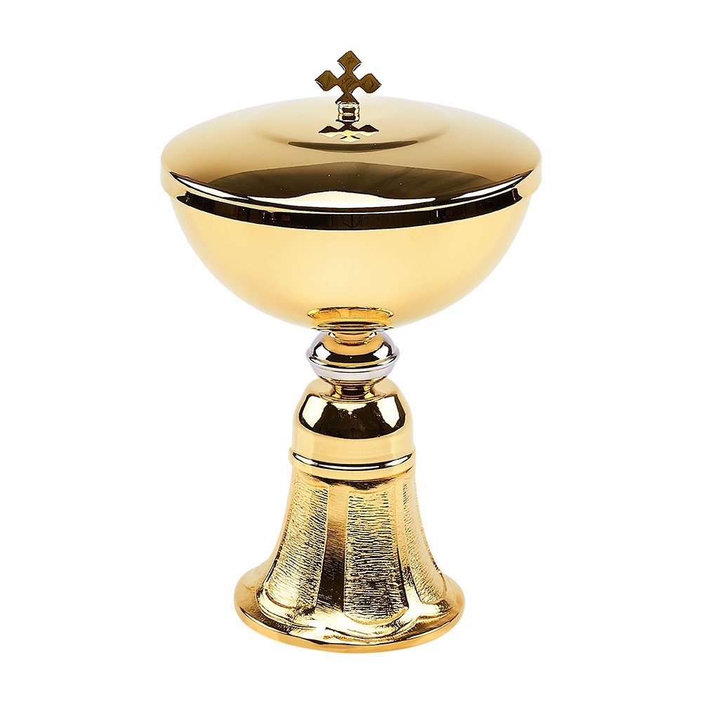 Pisside liturgica con base fusa, h 16 cm.