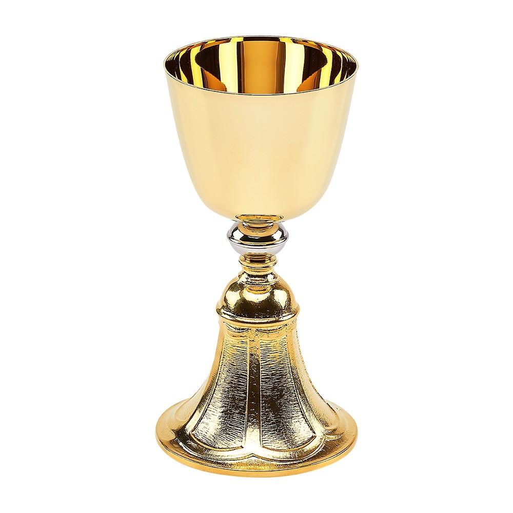 Calice da messa in ottone bicolore, h 20 cm.