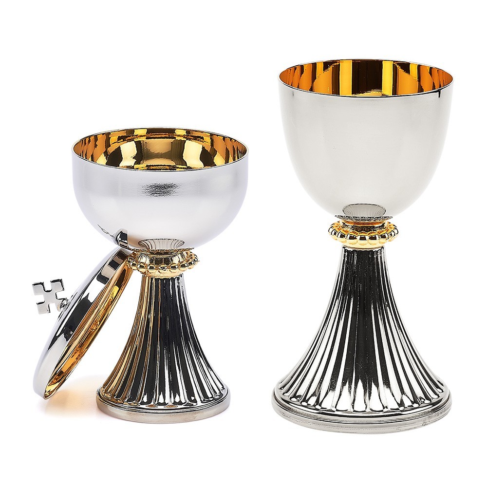 IL set è composto da un calice e una pisside in ottone nichelato, con interno coppa dorata.