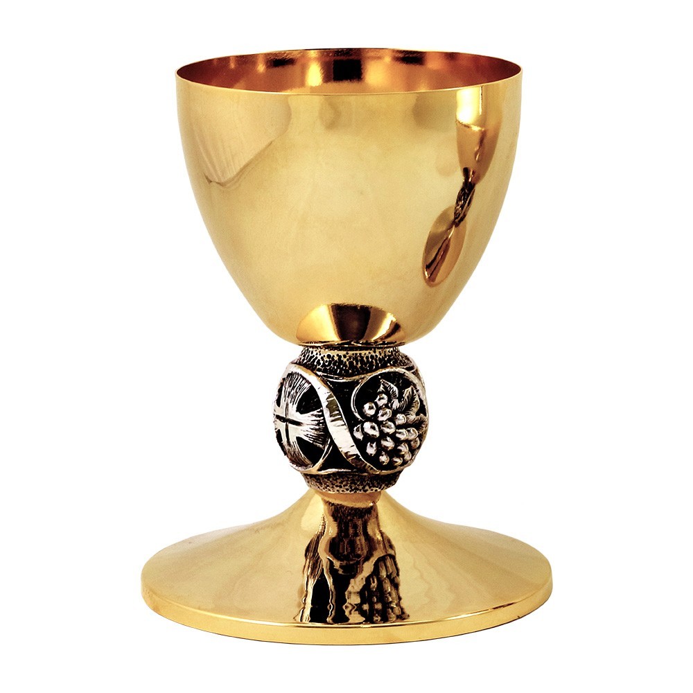 Calice eucaristico con nodo decorato "Croce e Uva", altezza 18,5 cm.