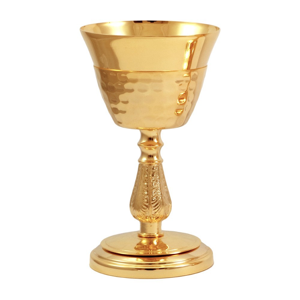 Calice in ottone dorato con base lavorata e nodo barocco.