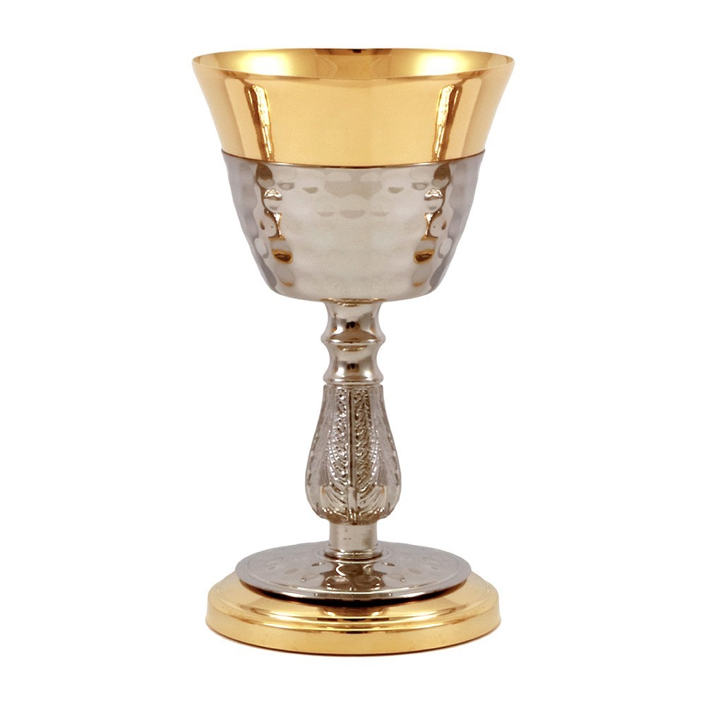 Calice in ottone bicolore con base martellata tono argento.