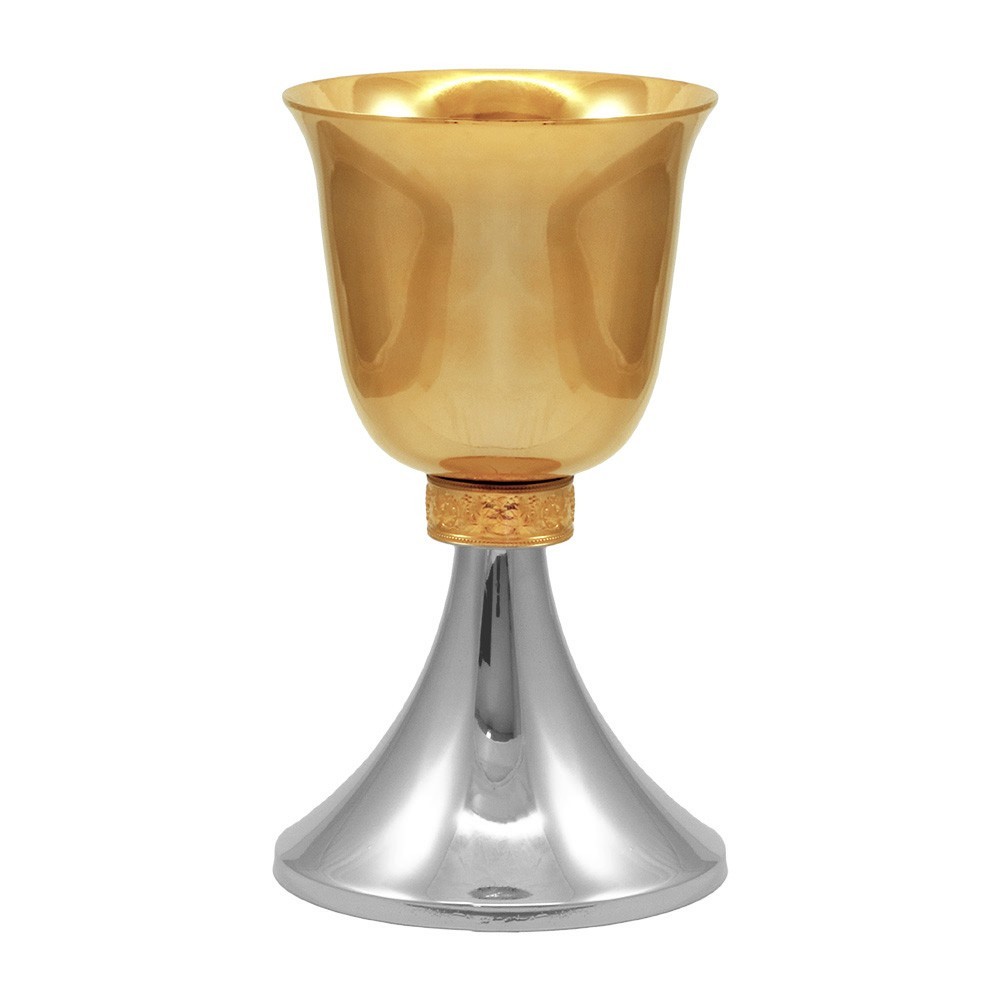 Calice liturgico in ottone bicolore con nodo decorato.