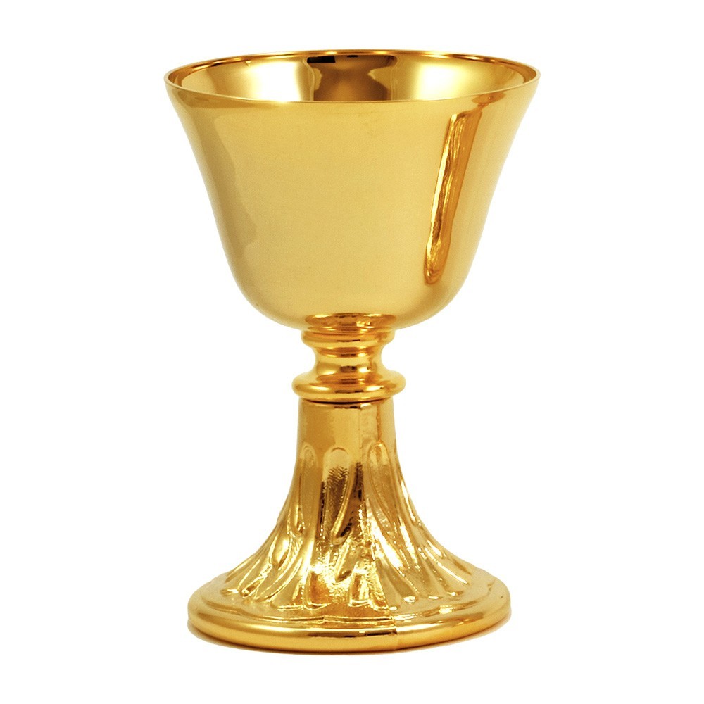 Calice in ottone dorato con base e coppa lucida, nodo rigato.