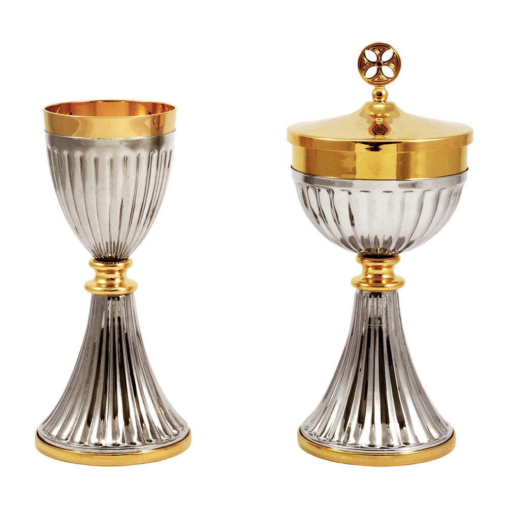 Calice e Pisside in ottone bicolore a contrasto.