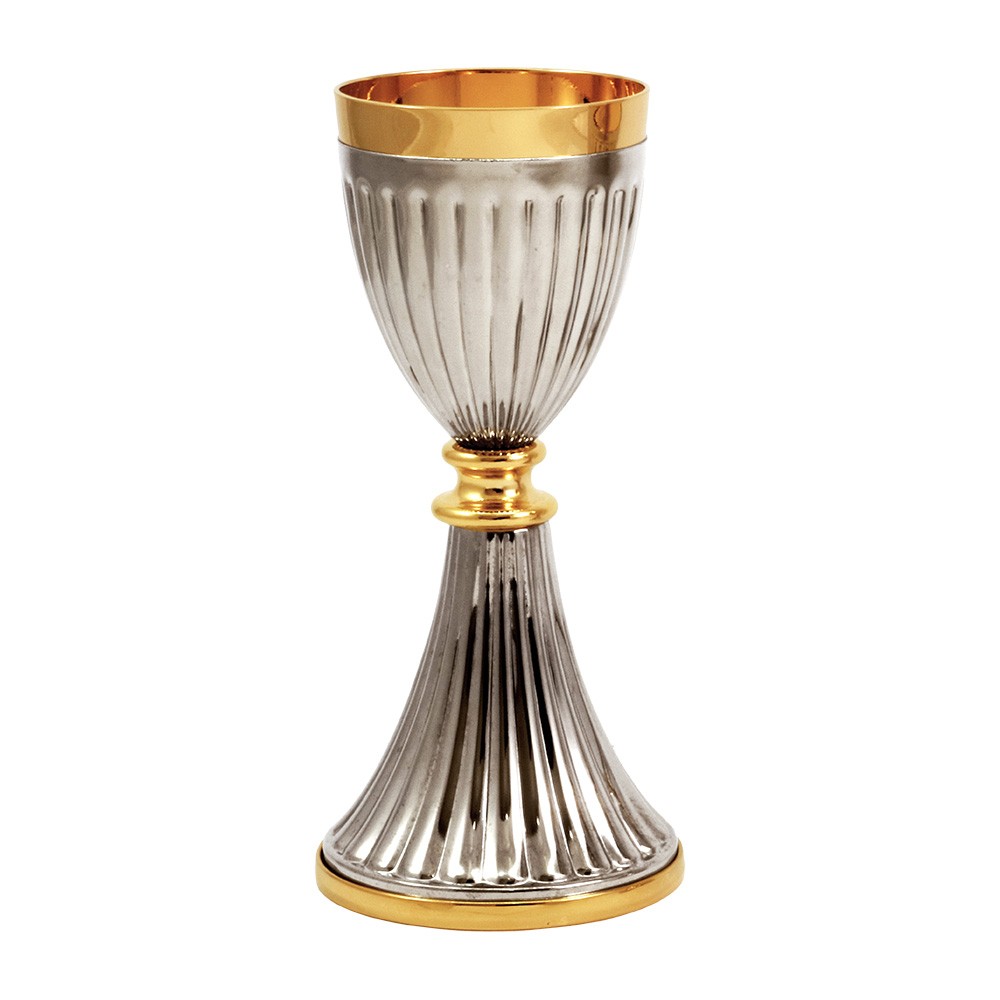 Calice liturgico in ottone bicolore, h 24 cm.