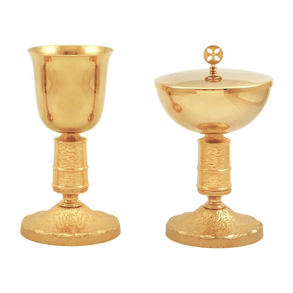 Coppia Calice Pisside con Base Martellata
