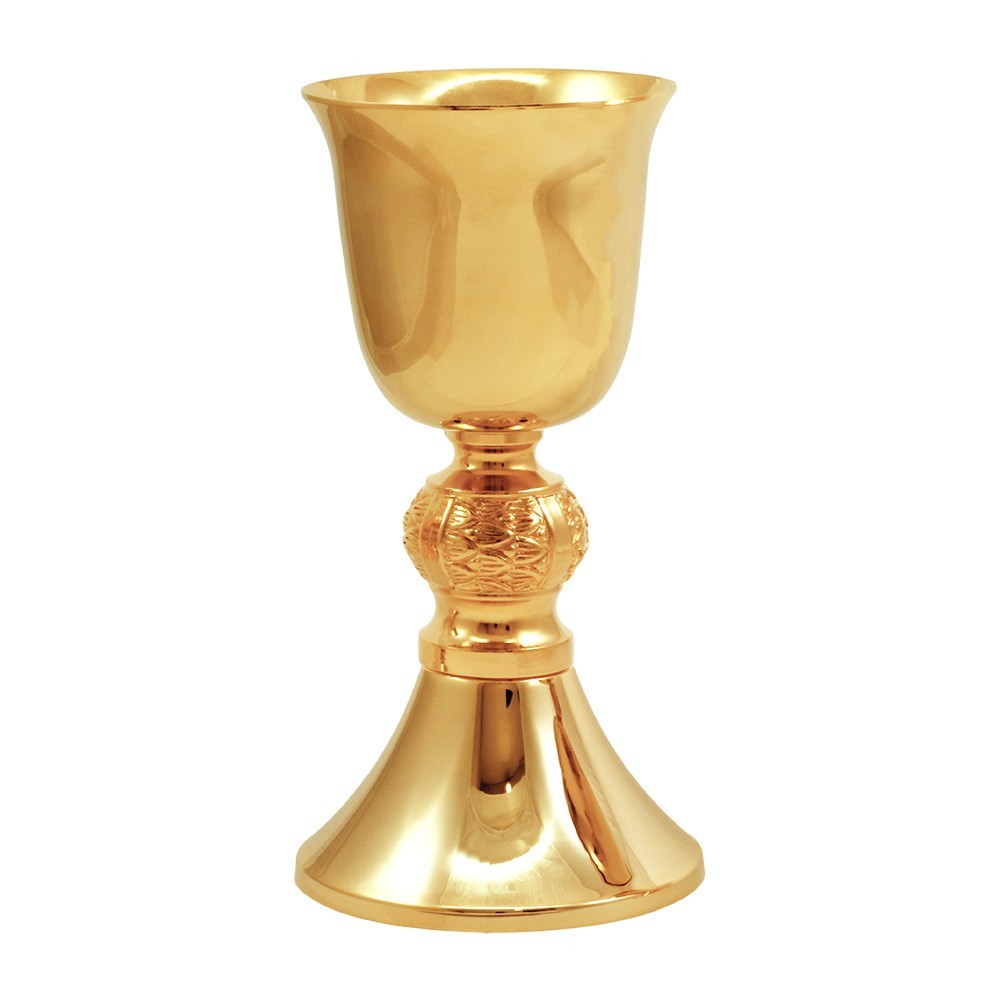 Calice liturgico in ottone 24k con nodo in fusione spighe di grano.