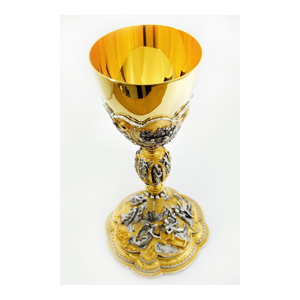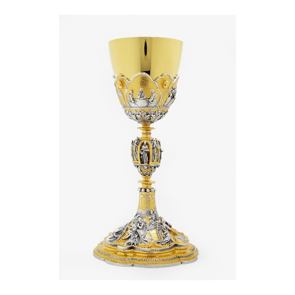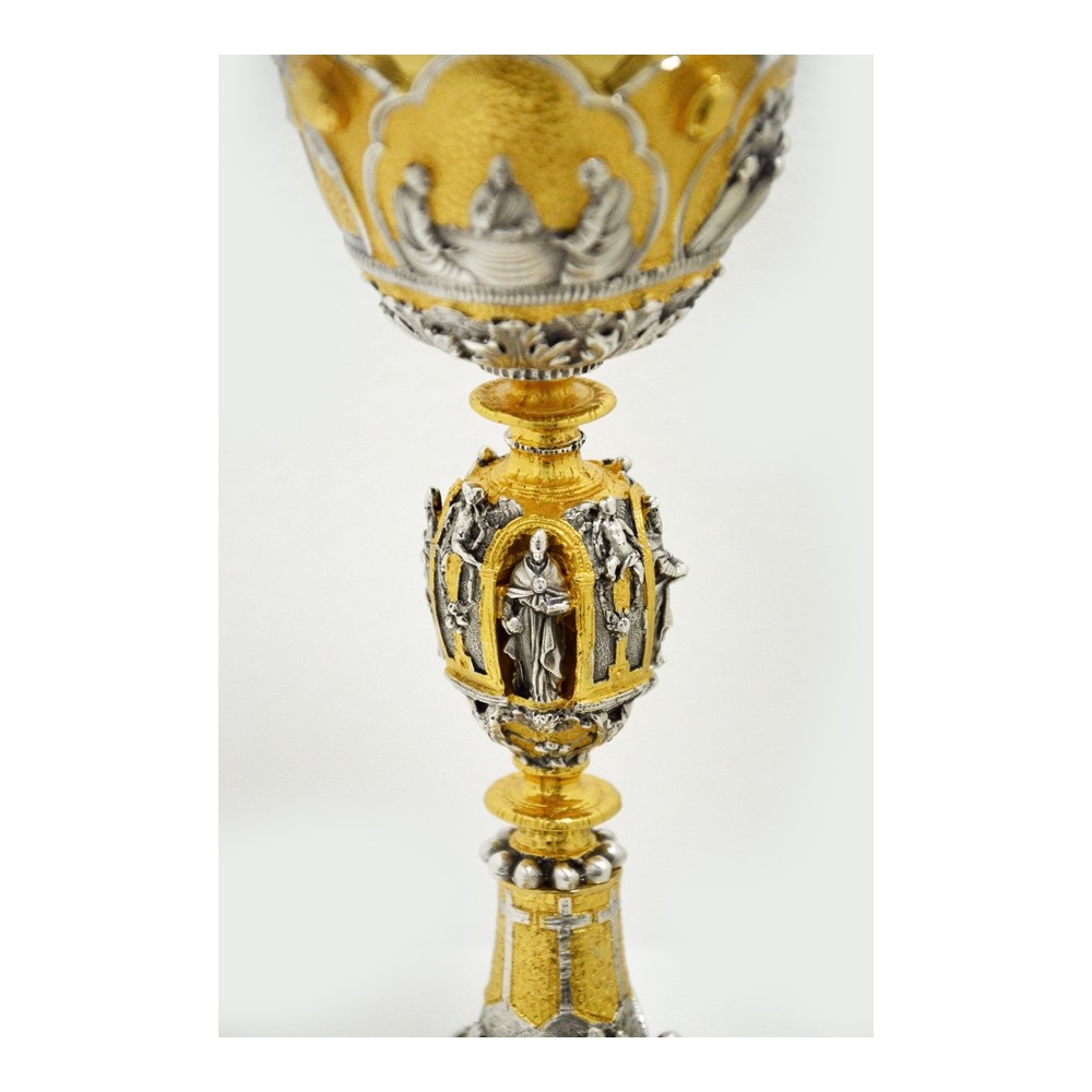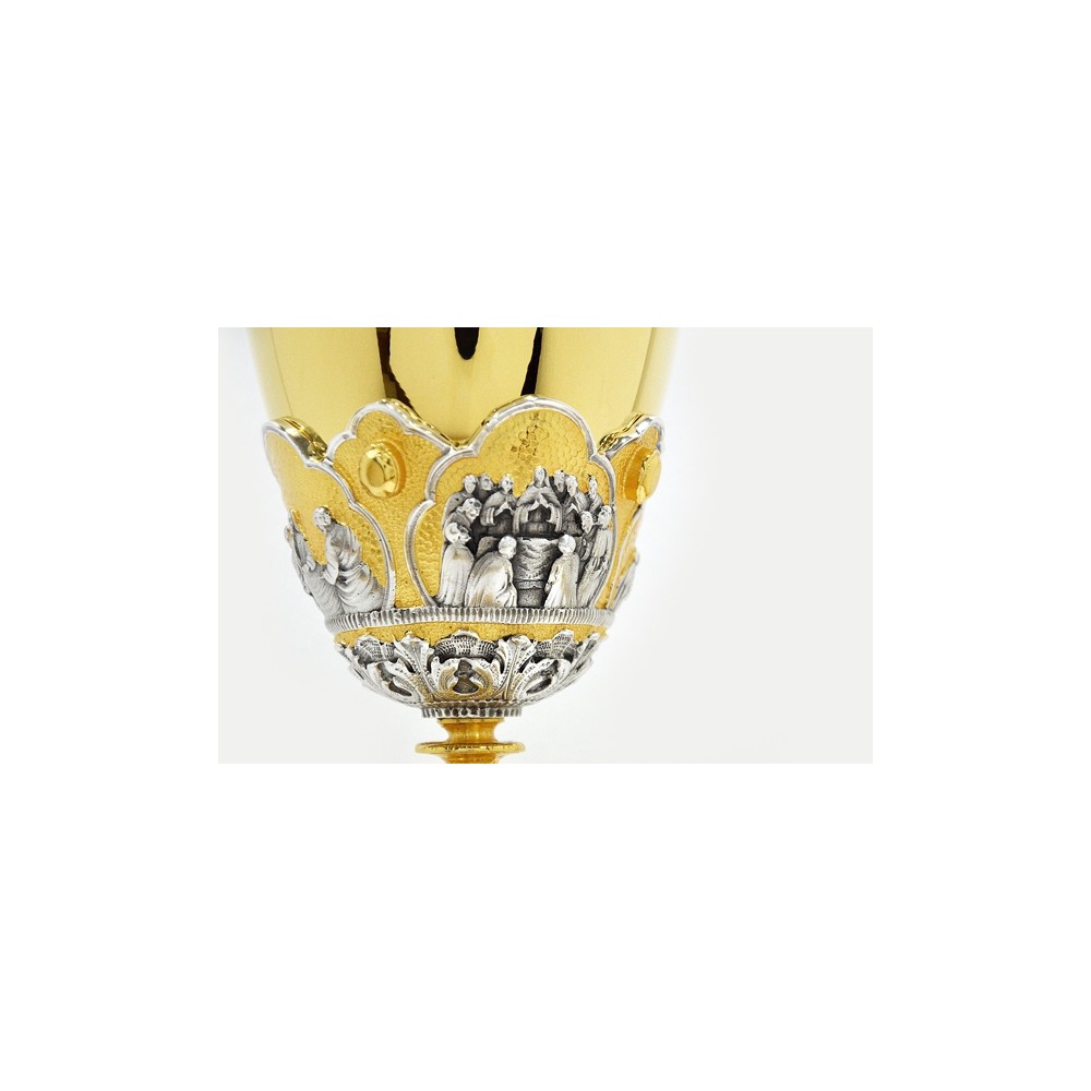 Calice liturgico in ottone cesellato Ultima Cena.
