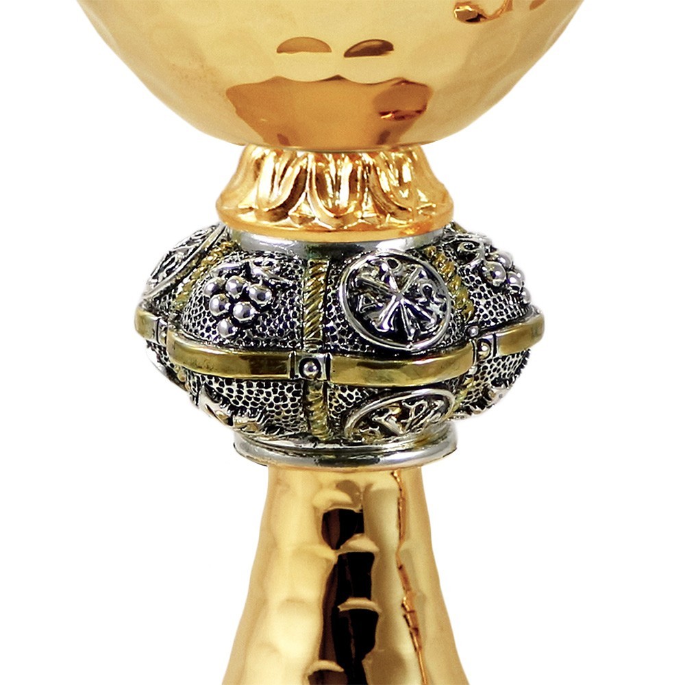 Calice liturgico in ottone martellato e nodo lavorato.