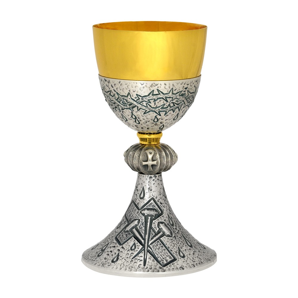 Calice "Tassillo" cesellato finemente a mano, completo di piatto patena.
