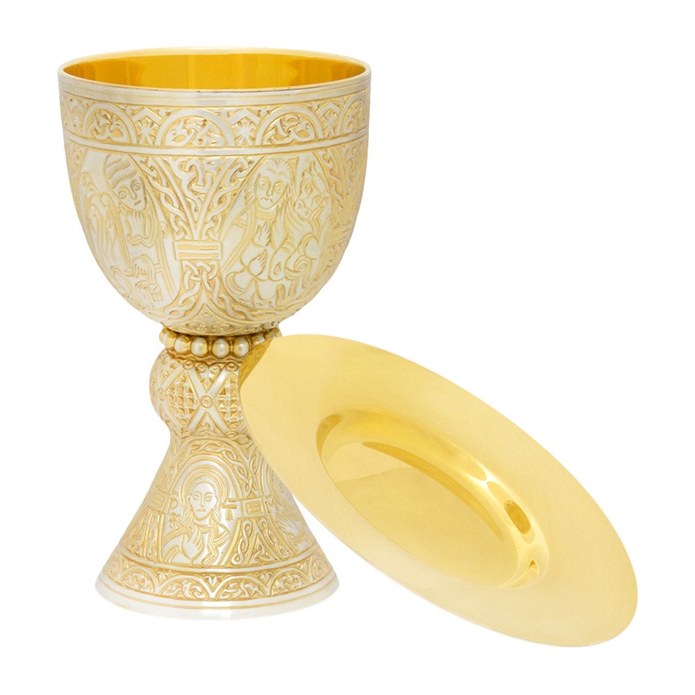 Calice "Tassillo" cesellato finemente a mano, completo di piatto patena.