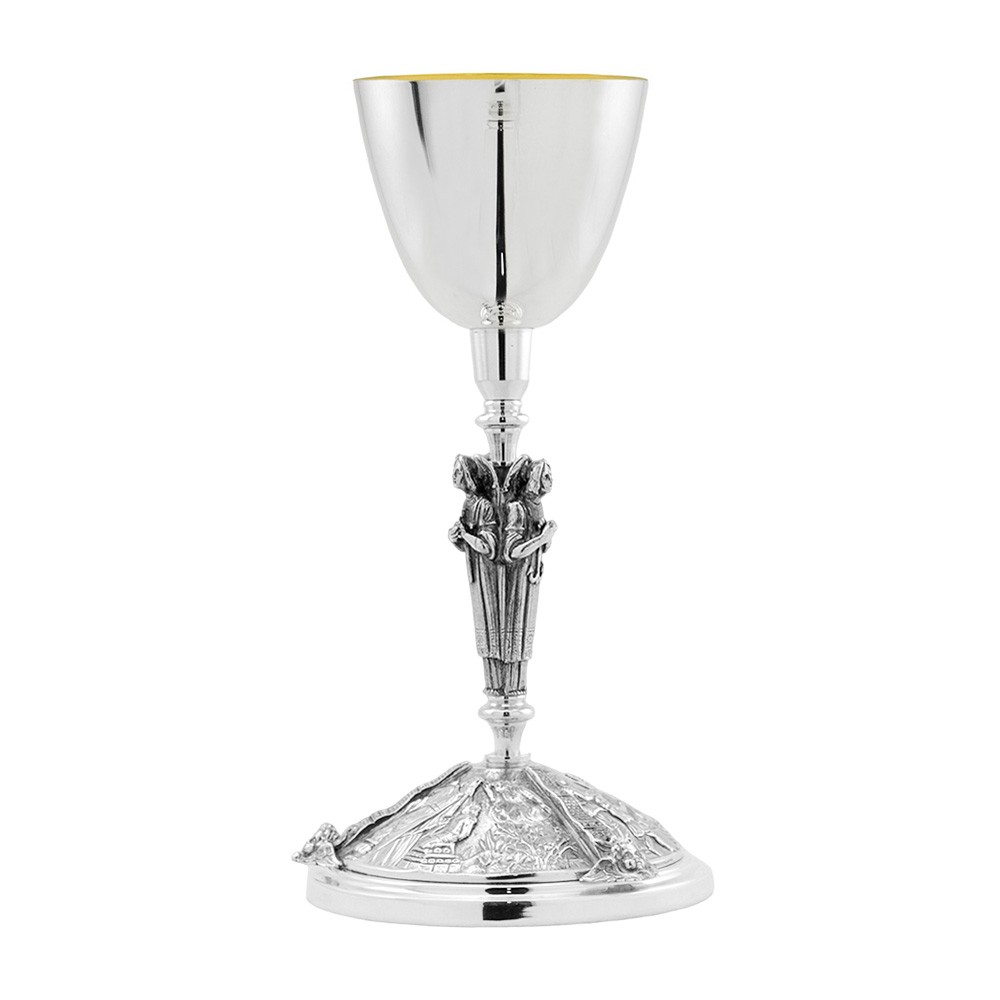 Calice in ottone oro e argento, con nodo decorato con "Uve e Foglie di Vite".