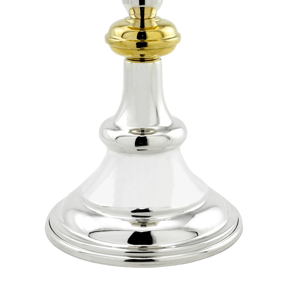 Calice da messa in ottone con base decorata e nodo in stile barocco.