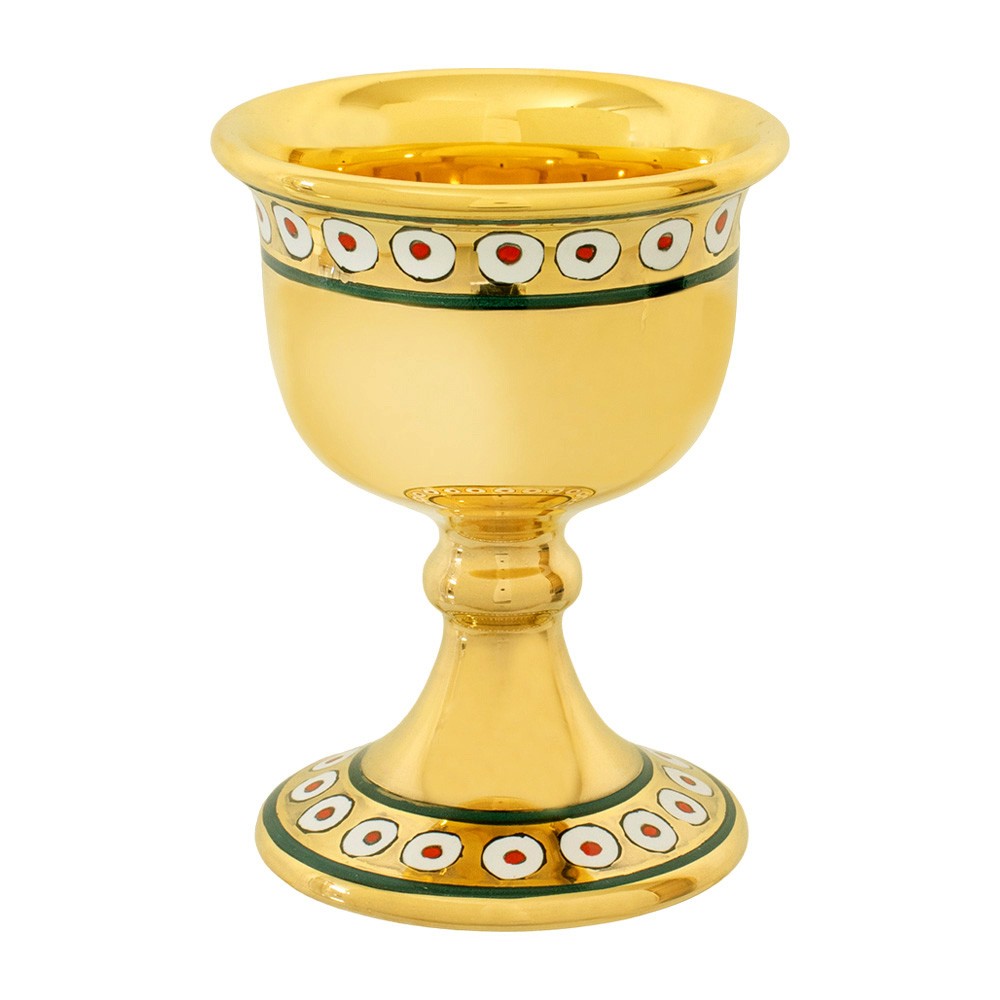 L'interno del calice è in foglia oro adatto al contatto con il vino per la celebrazione, come previsto dalla liturgia.