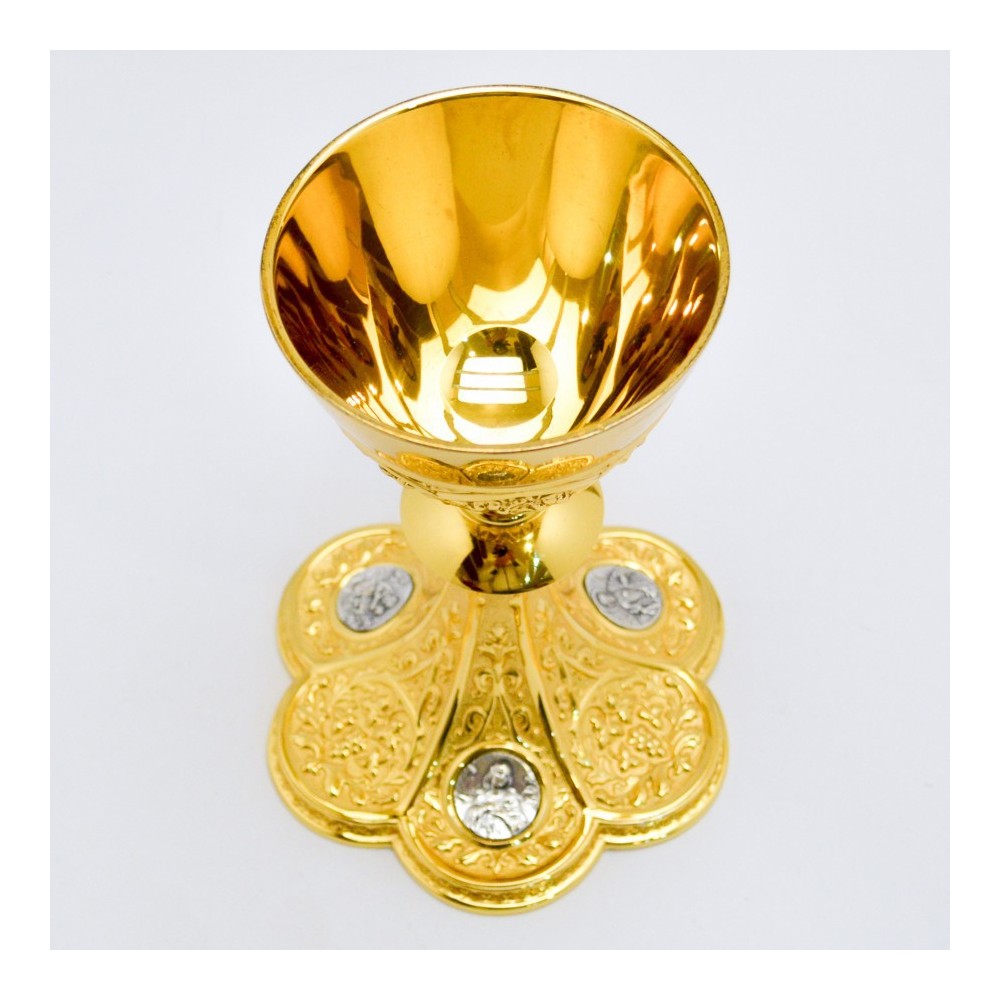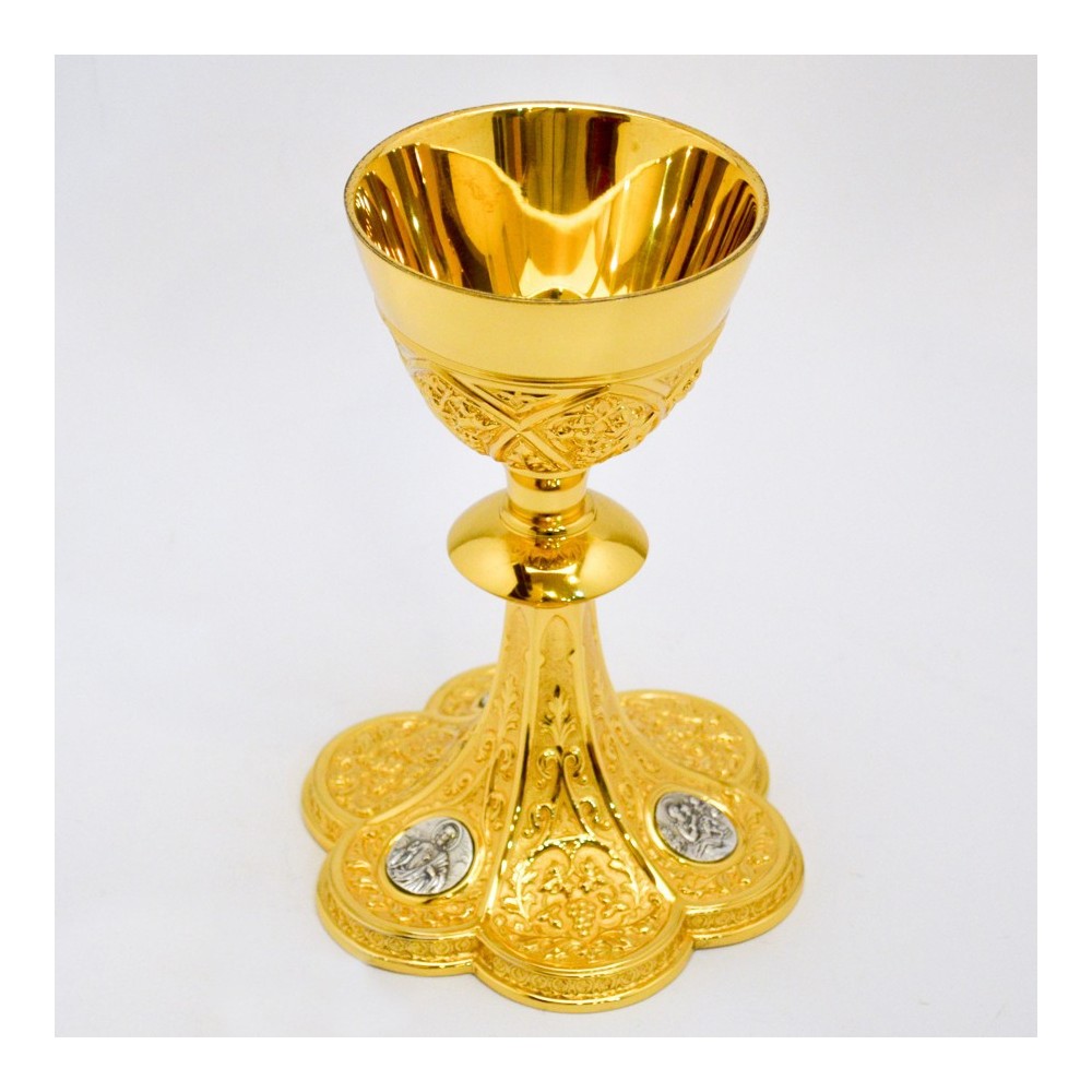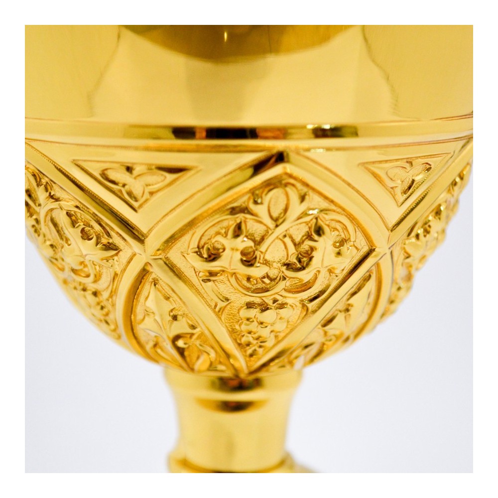Calice sacerdotale in ottone con base decorata in ottone anticato.