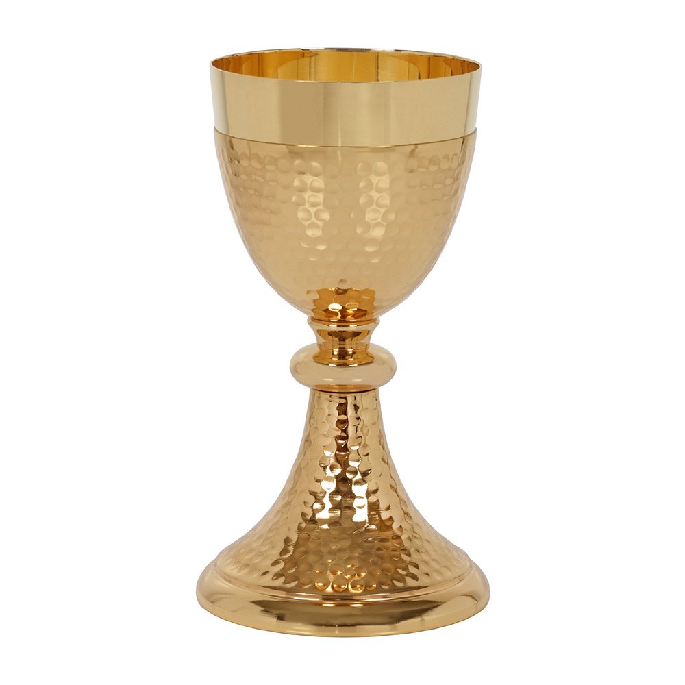 Calice liturgico in ottone dorato martellato. Made in Italy.